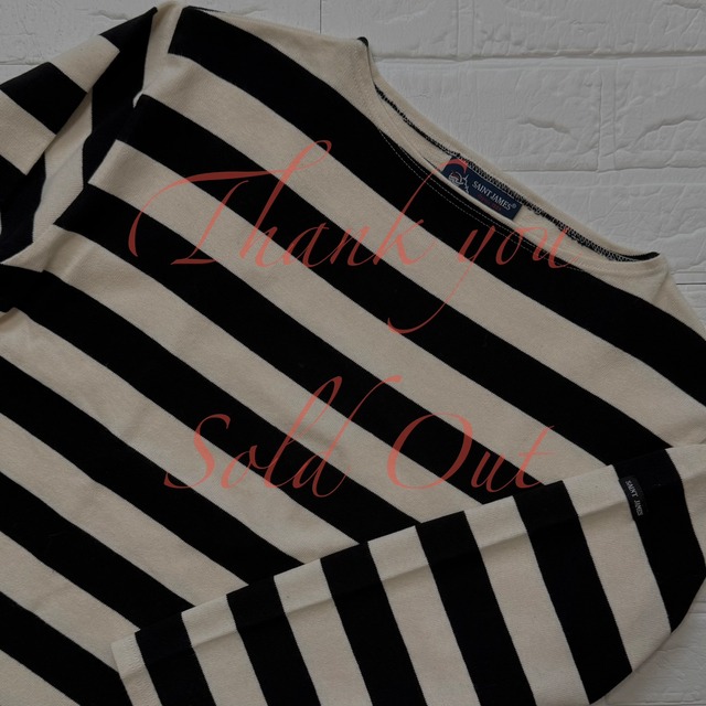SAINT JAMES OUESSANT ワイド ボーダー バスクシャツ (エクリュ×ブラック、サイズT4、実寸 メンズS-M/ウィメンズM-Lサイズ 相当、フランス製) / セントジェームス