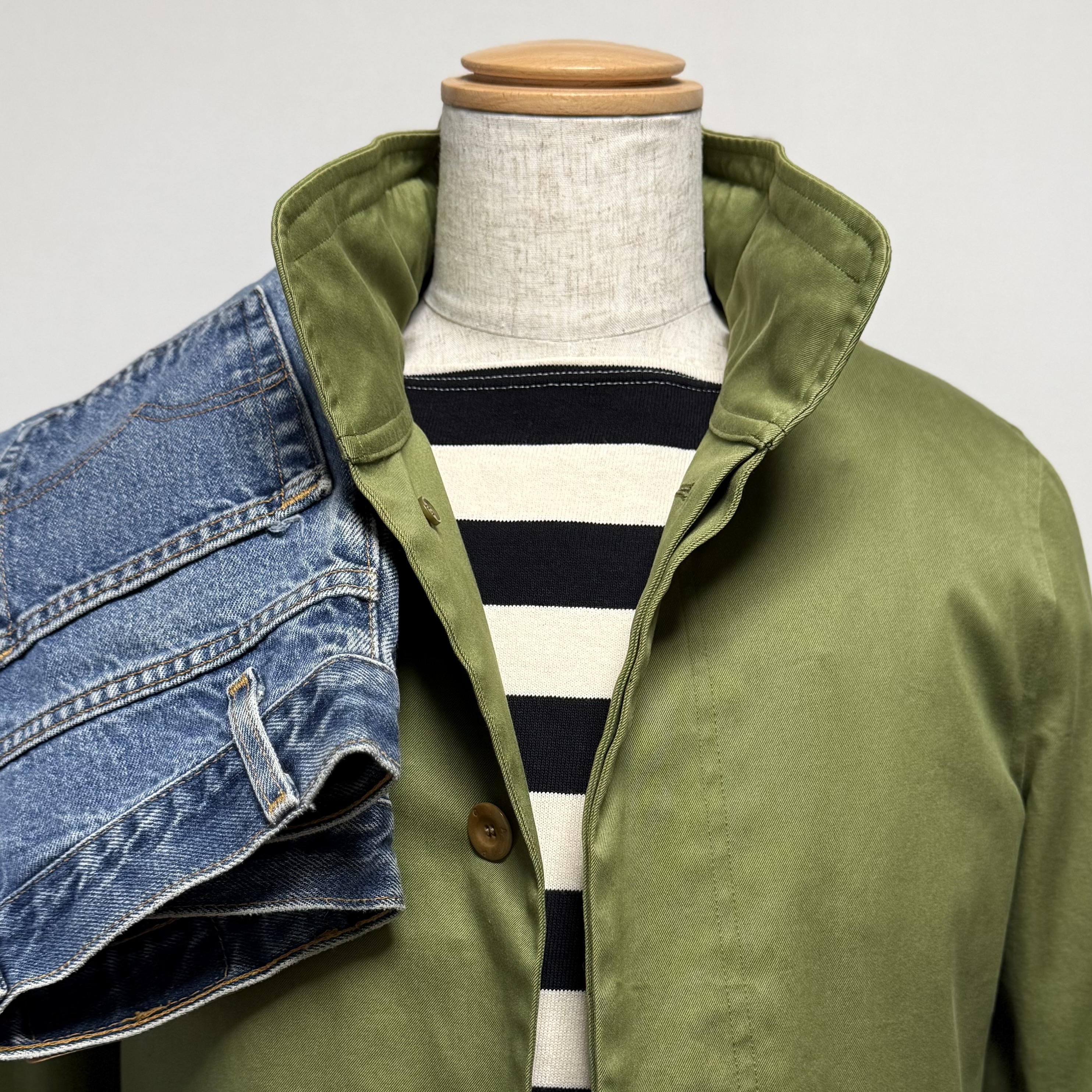 コットン生地の素材感と裏地使い、ライナーの着脱によって春・秋・冬の着用に重宝するアウターです。