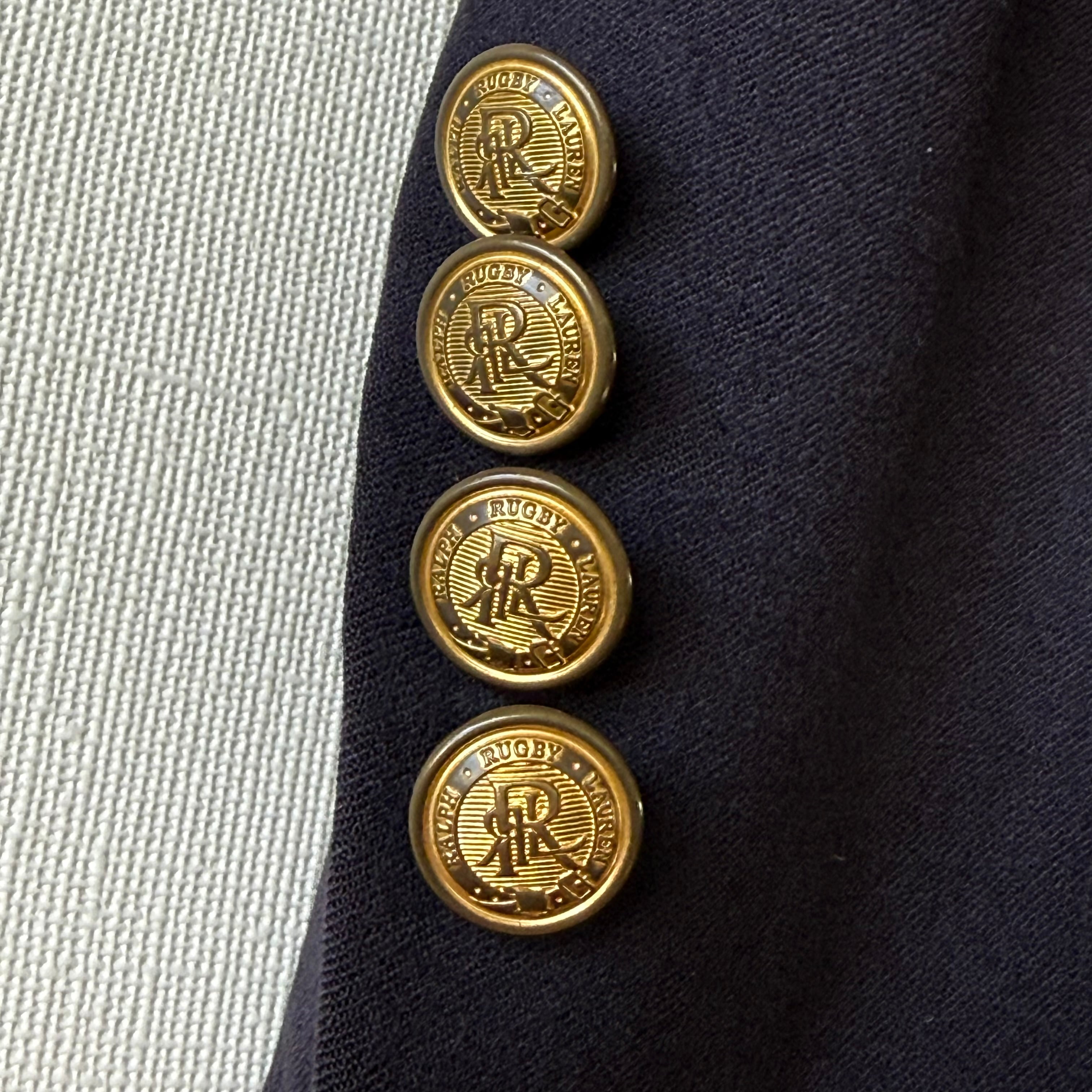 ラグビー ラルフローレンの3釦ネイビーブレザー。