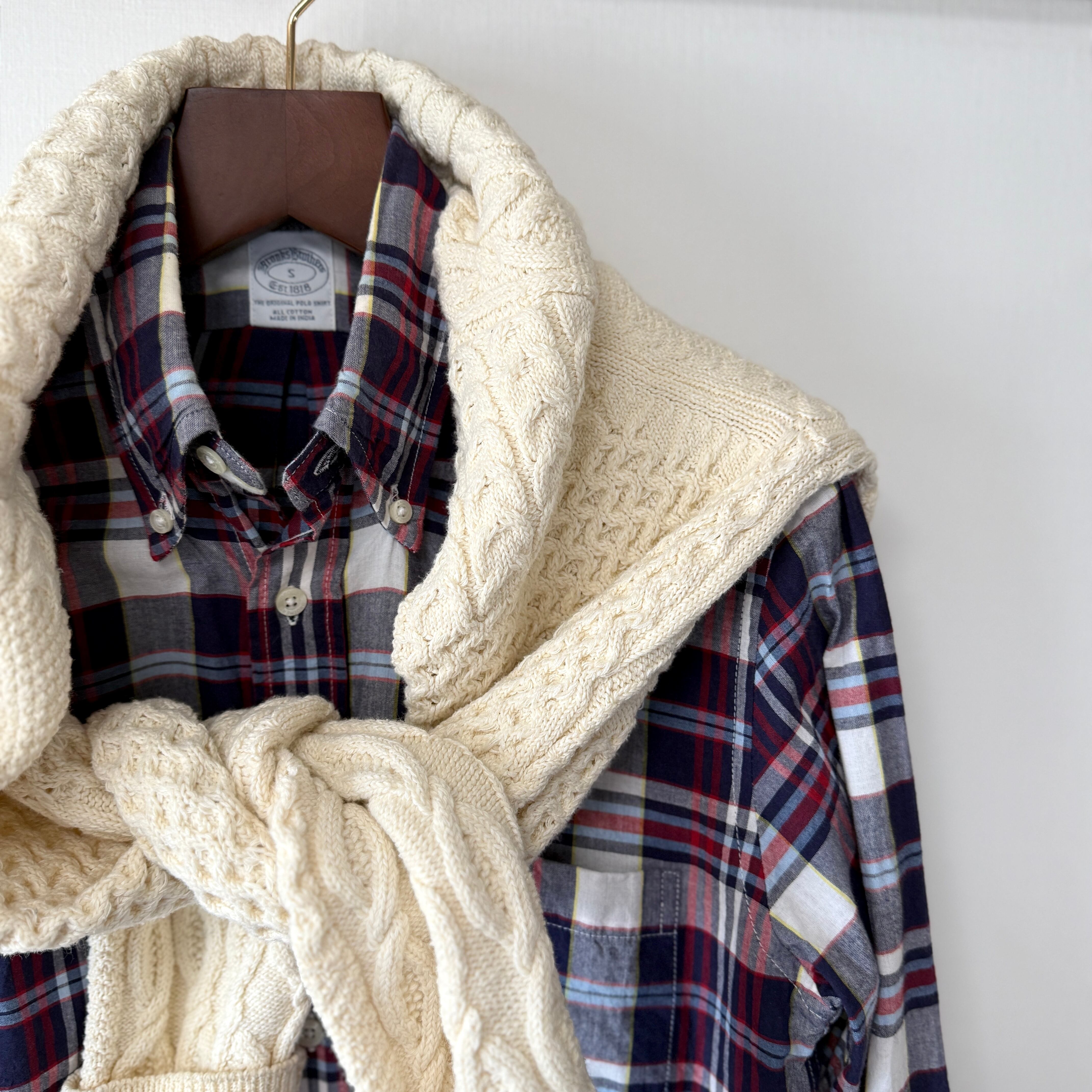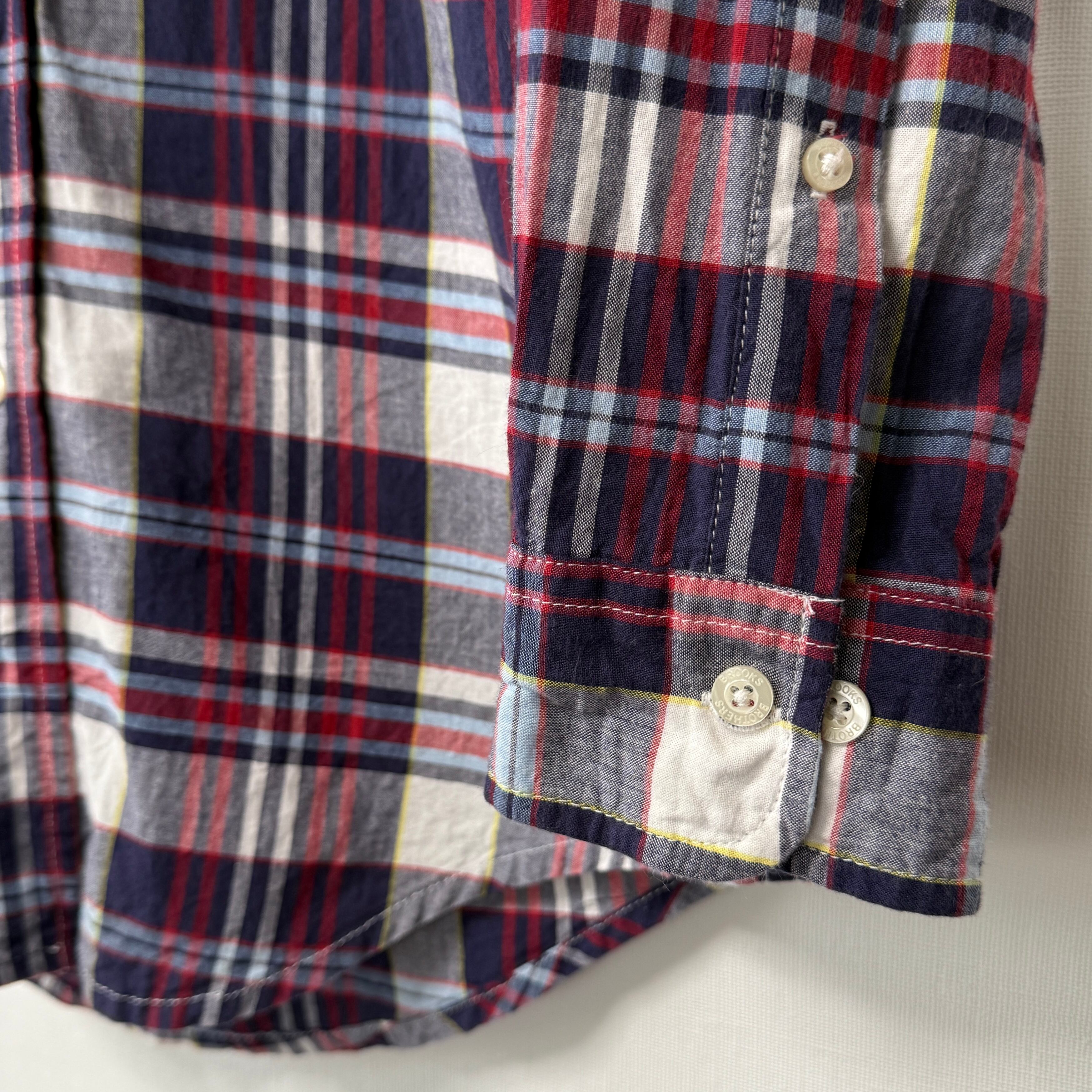 ブルックスブラザーズのマドラスチェック柄ボタンダウンシャツ。