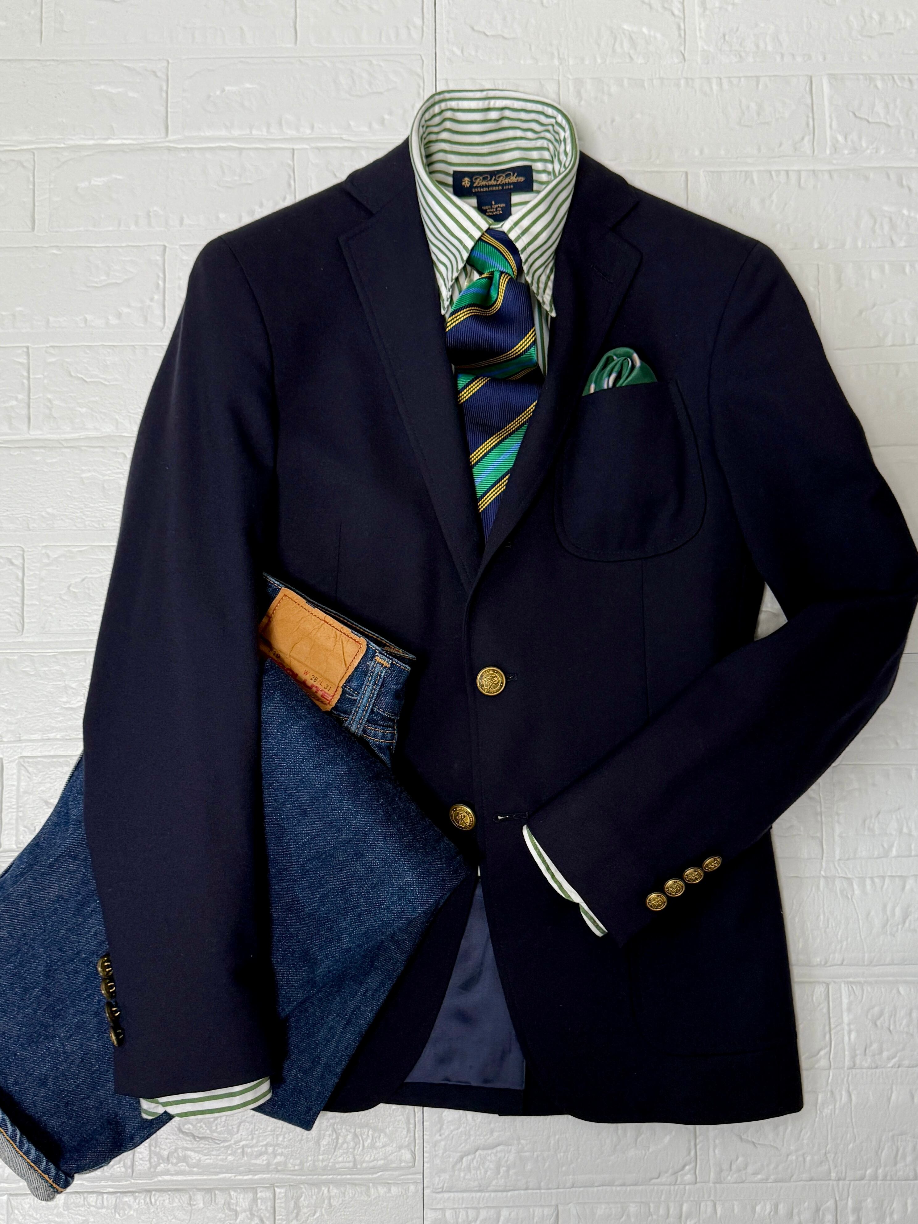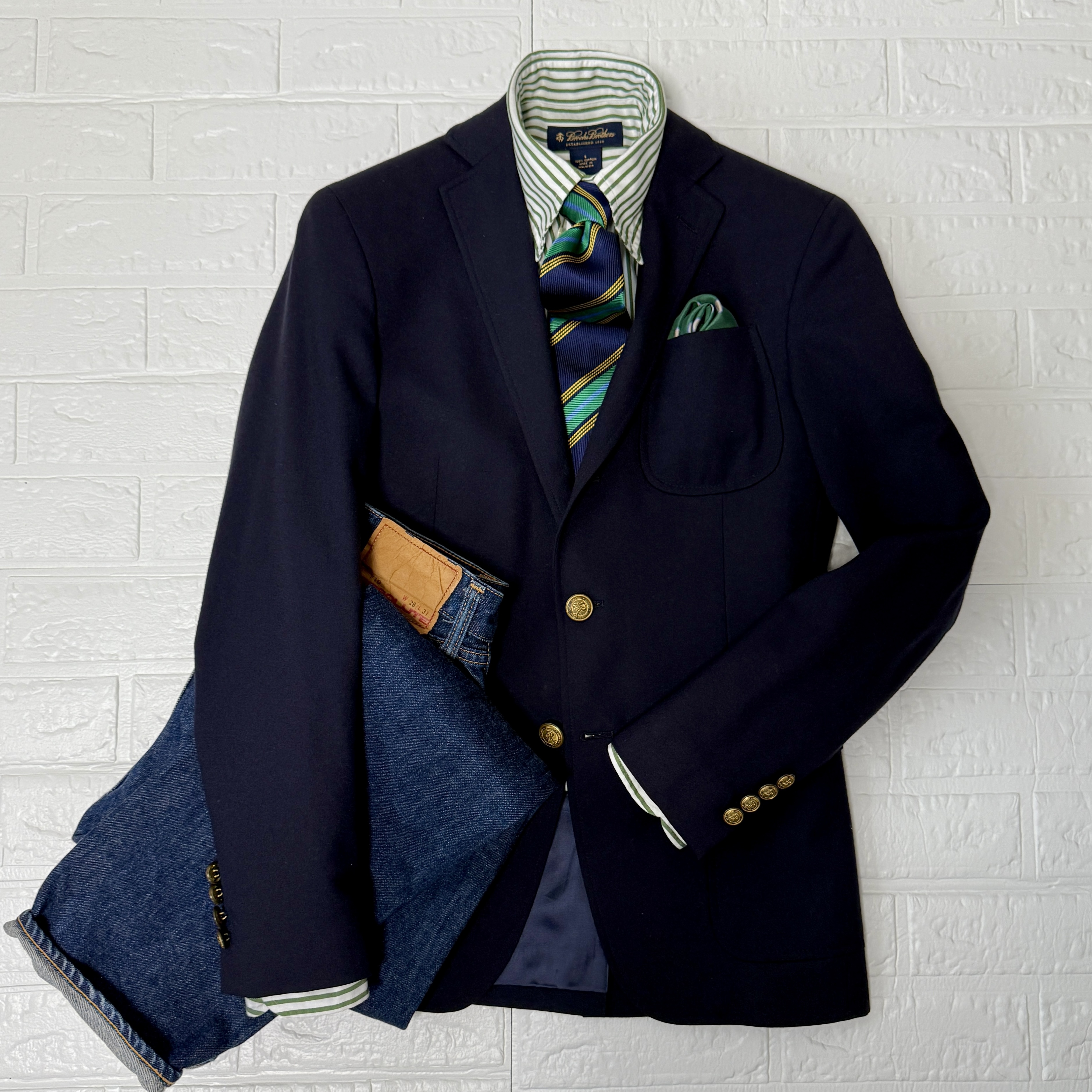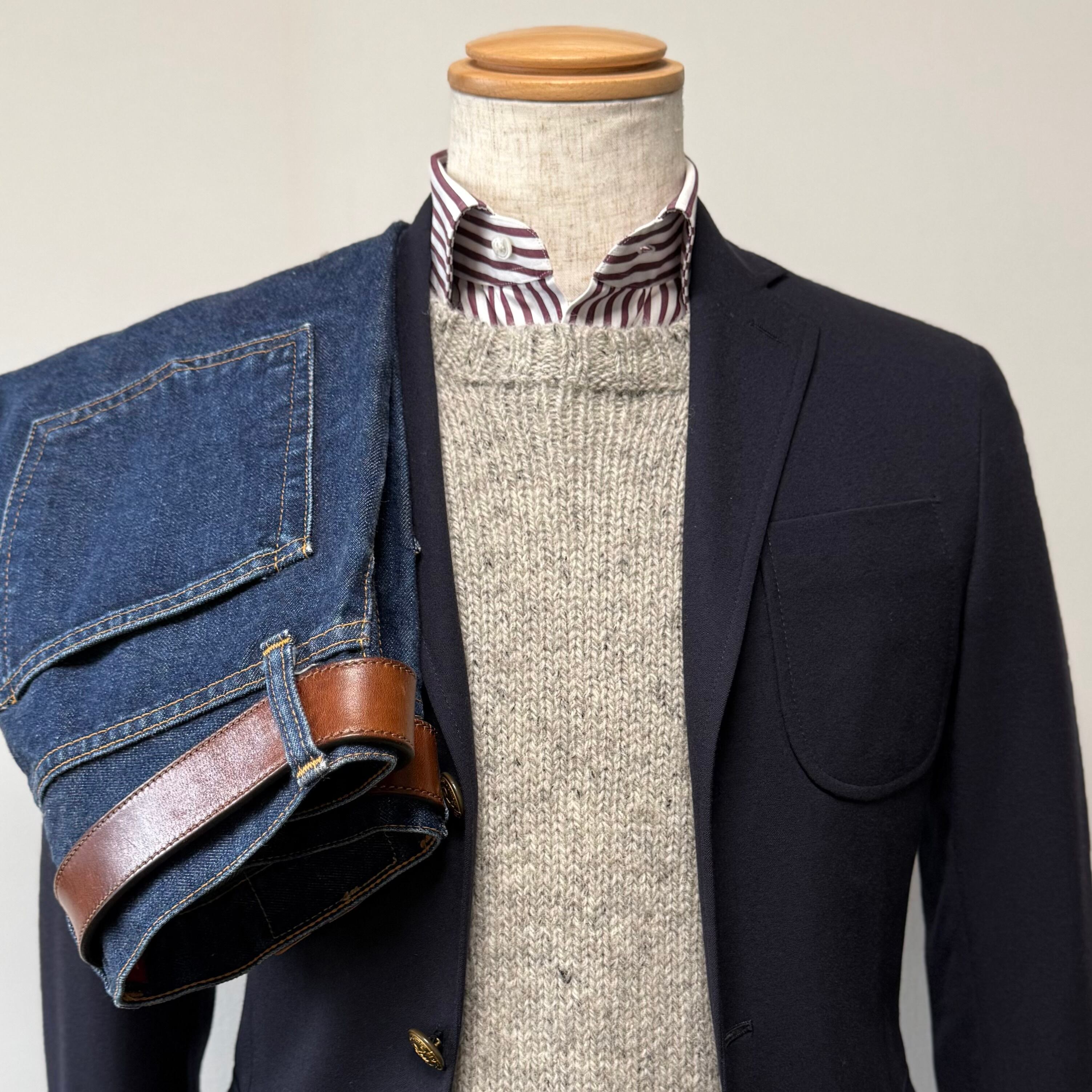 デニム特有のラフさの中にシックな雰囲気を併せ持ち、カジュアルスタイルは勿論、ジャケットスタイルにも相性◎。