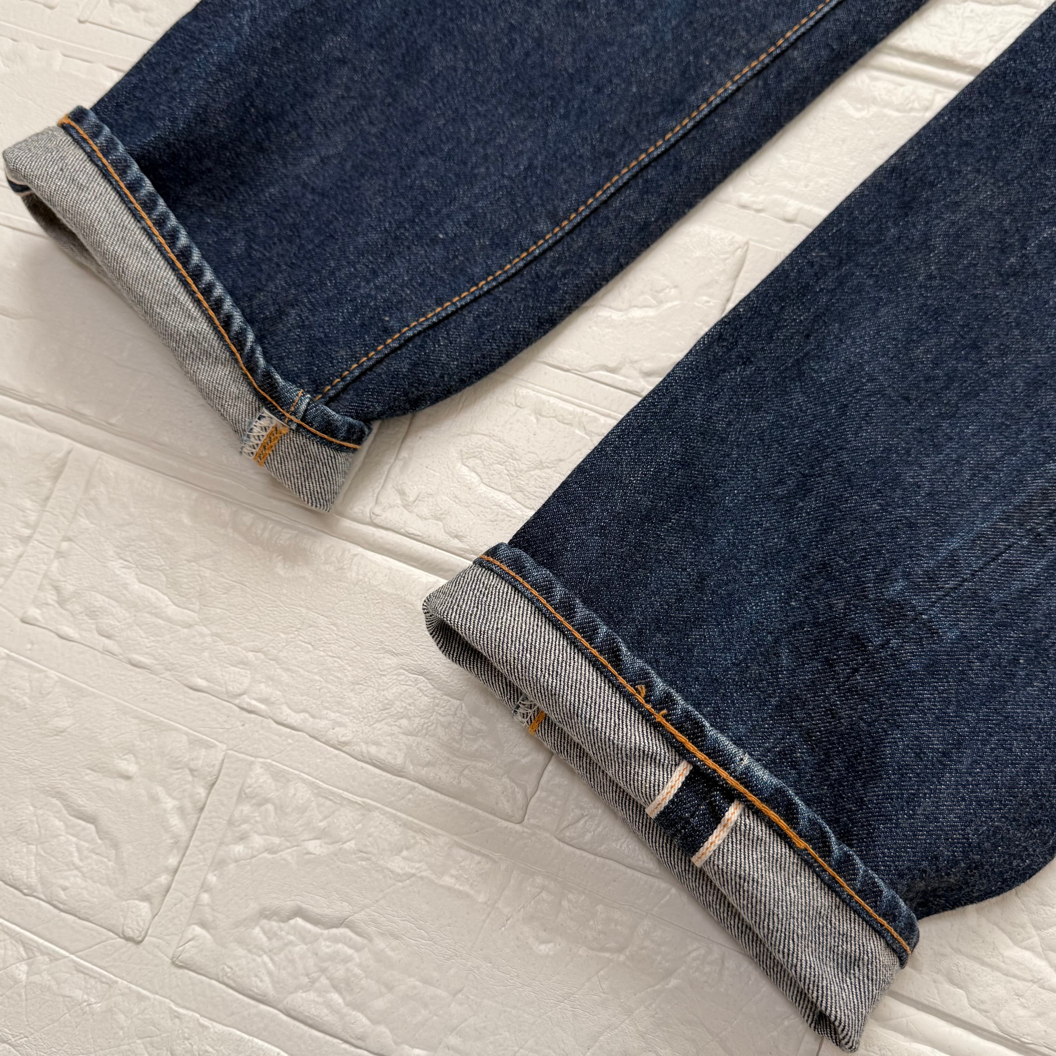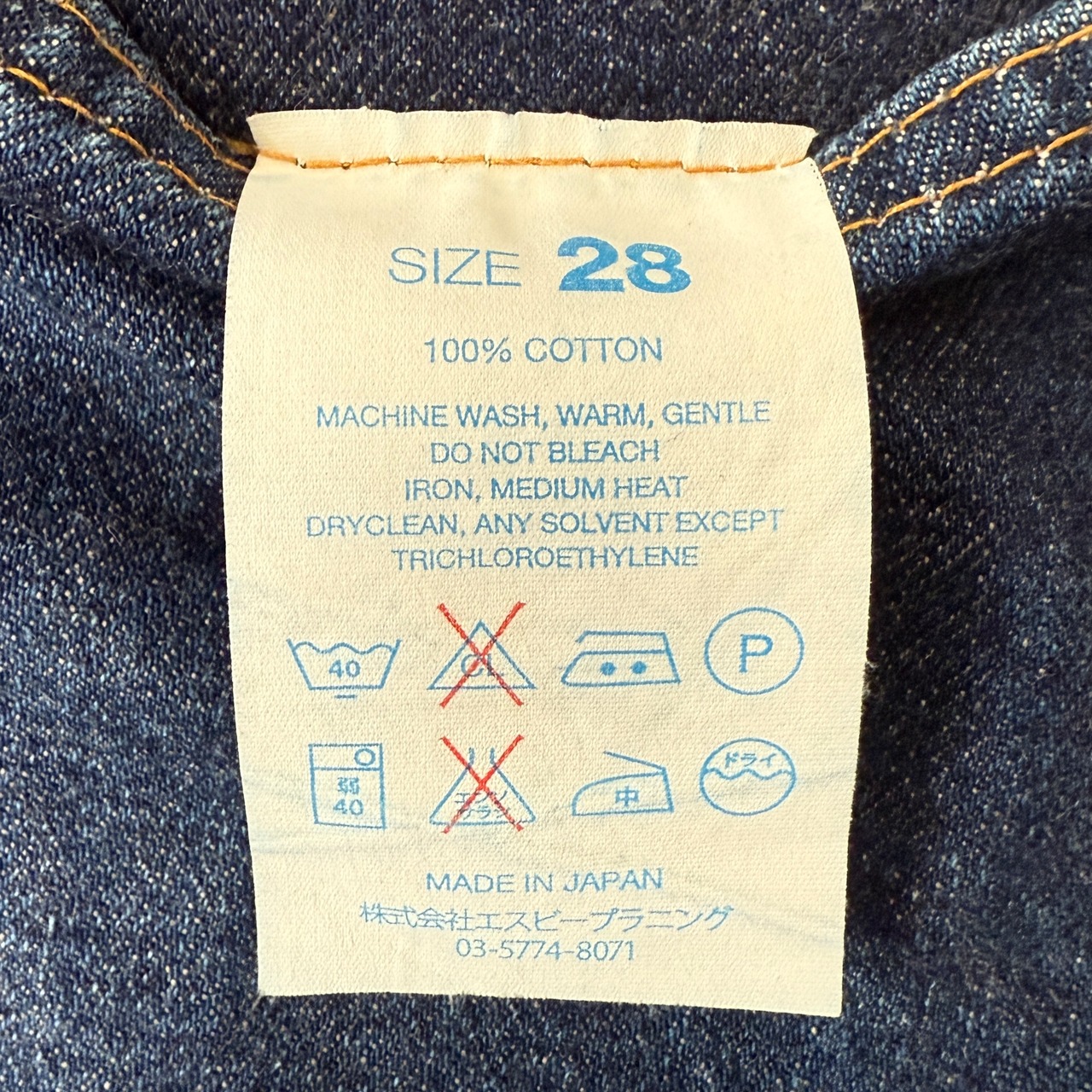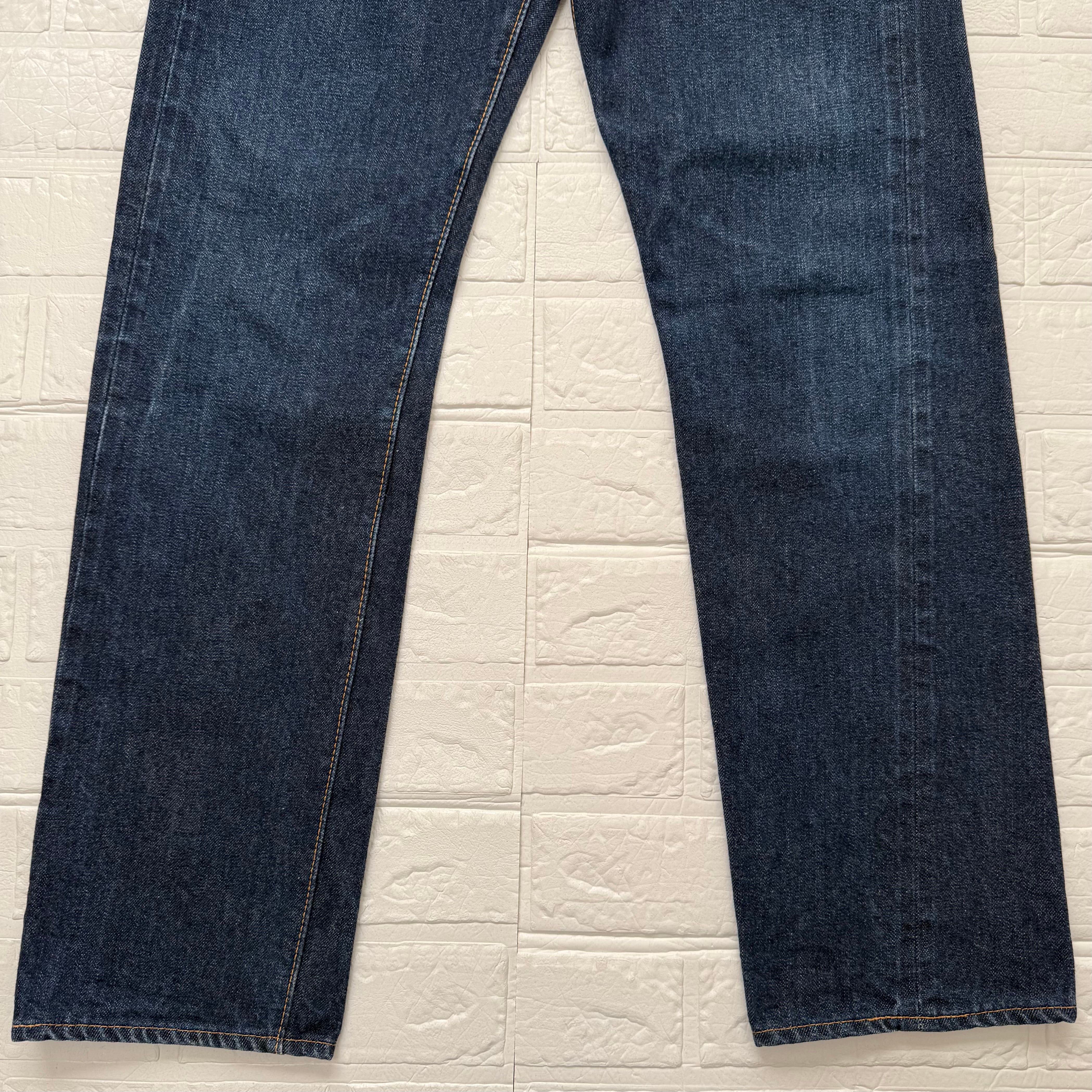 デニム地特有の擦れやアタリ、毛羽立ち、生地の捻りがあります。