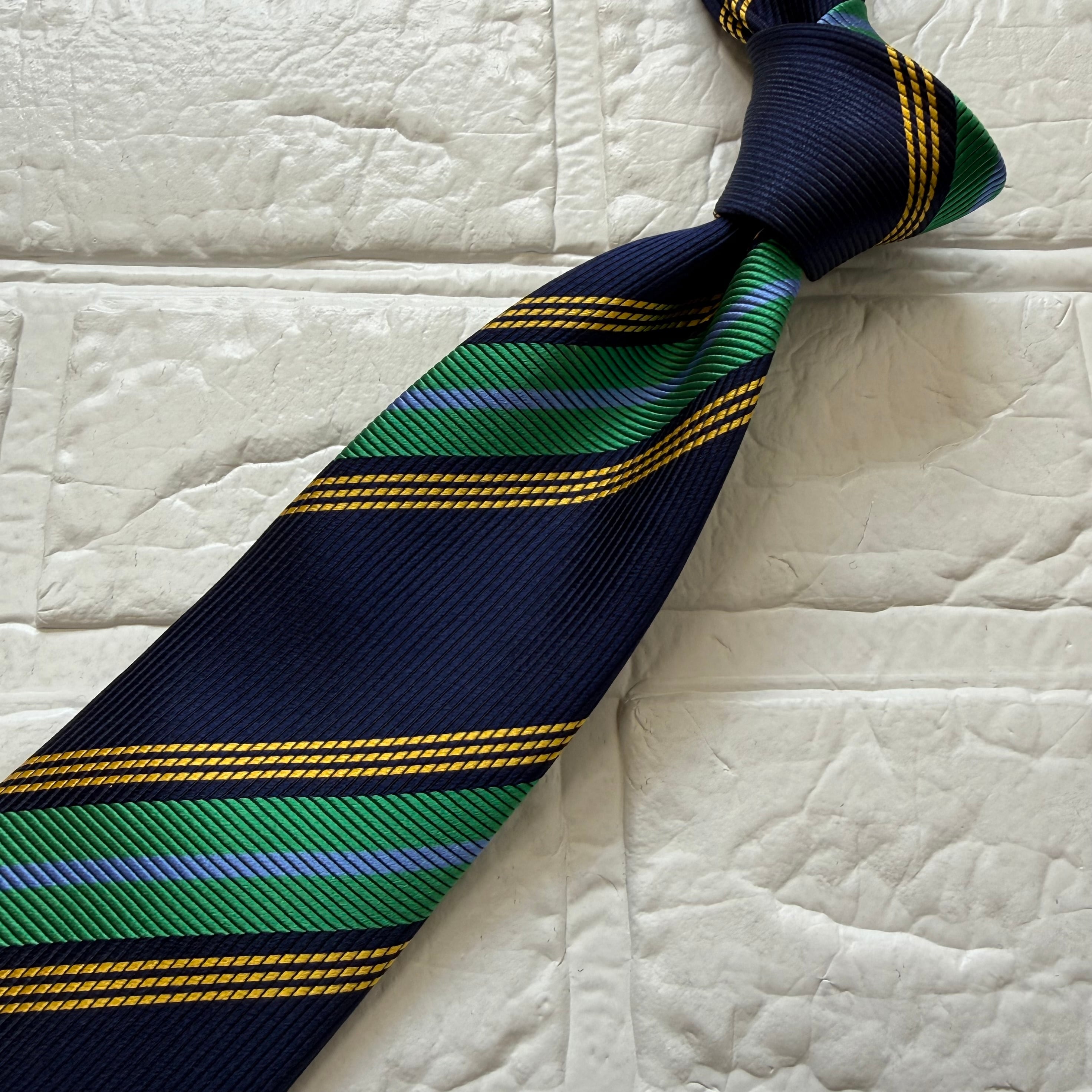 ドレイクスらしいブリティッシュアメリカンテイストなワイドストライプ柄ネクタイ。
