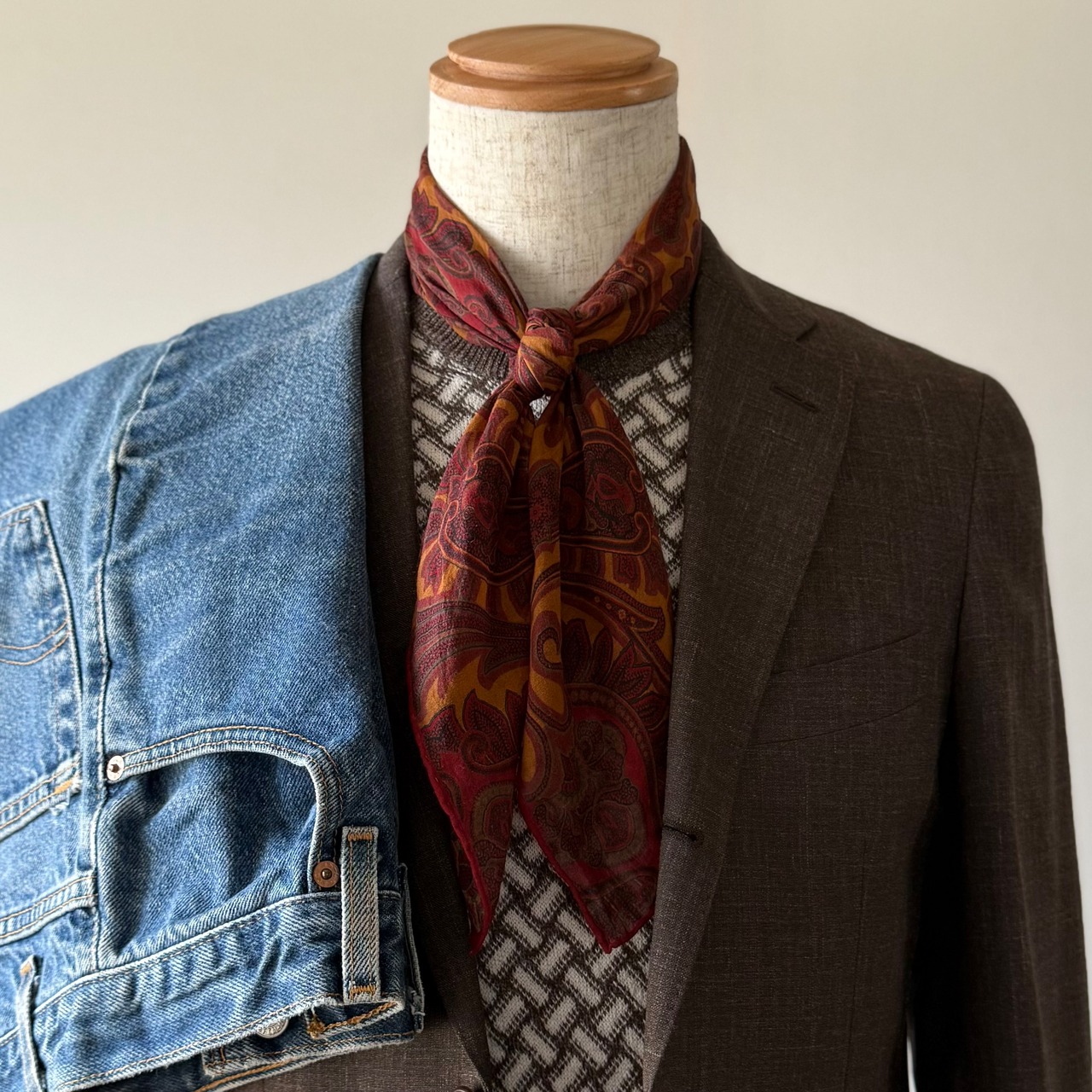 ドルモア定番ビスコッティ柄のクルーネックニット。