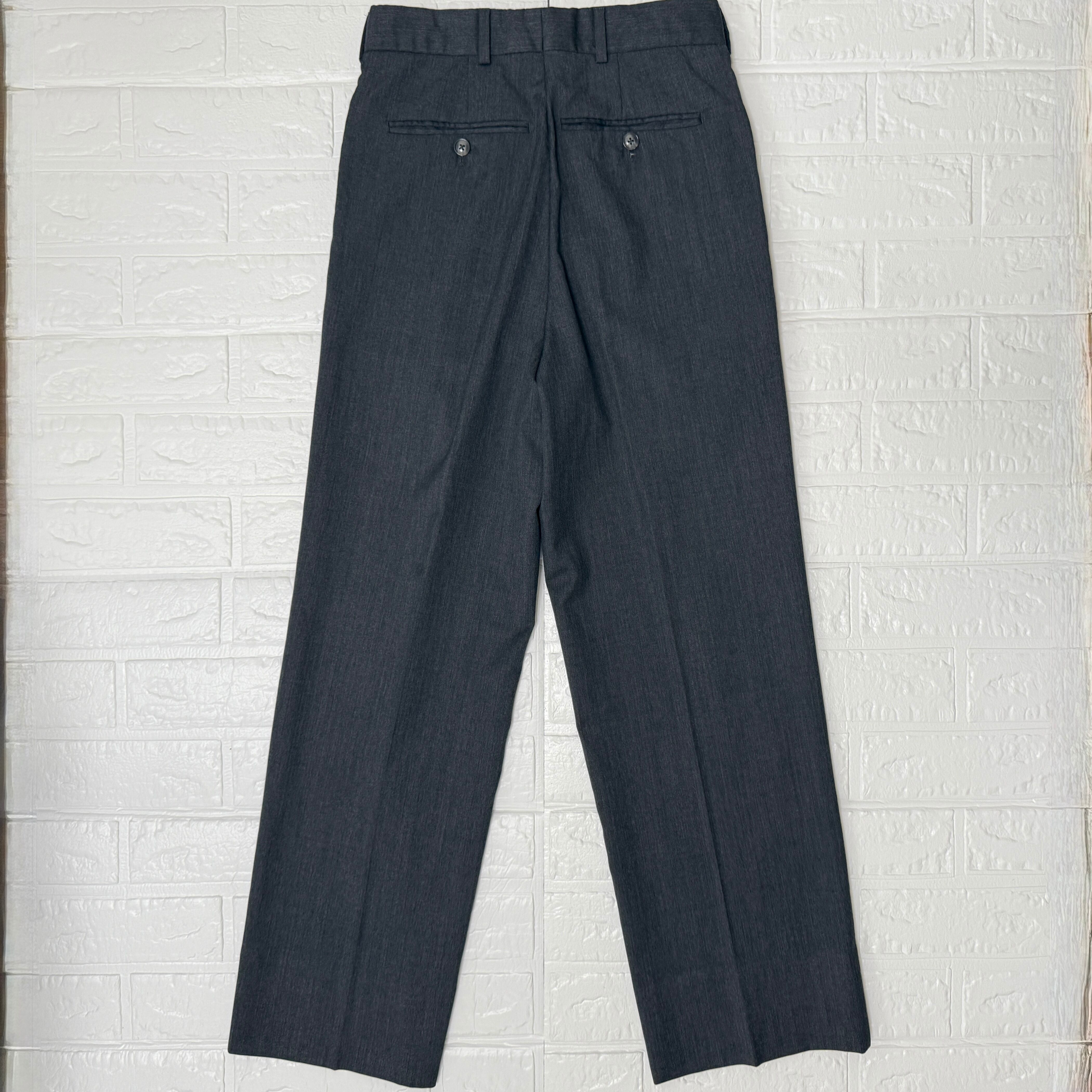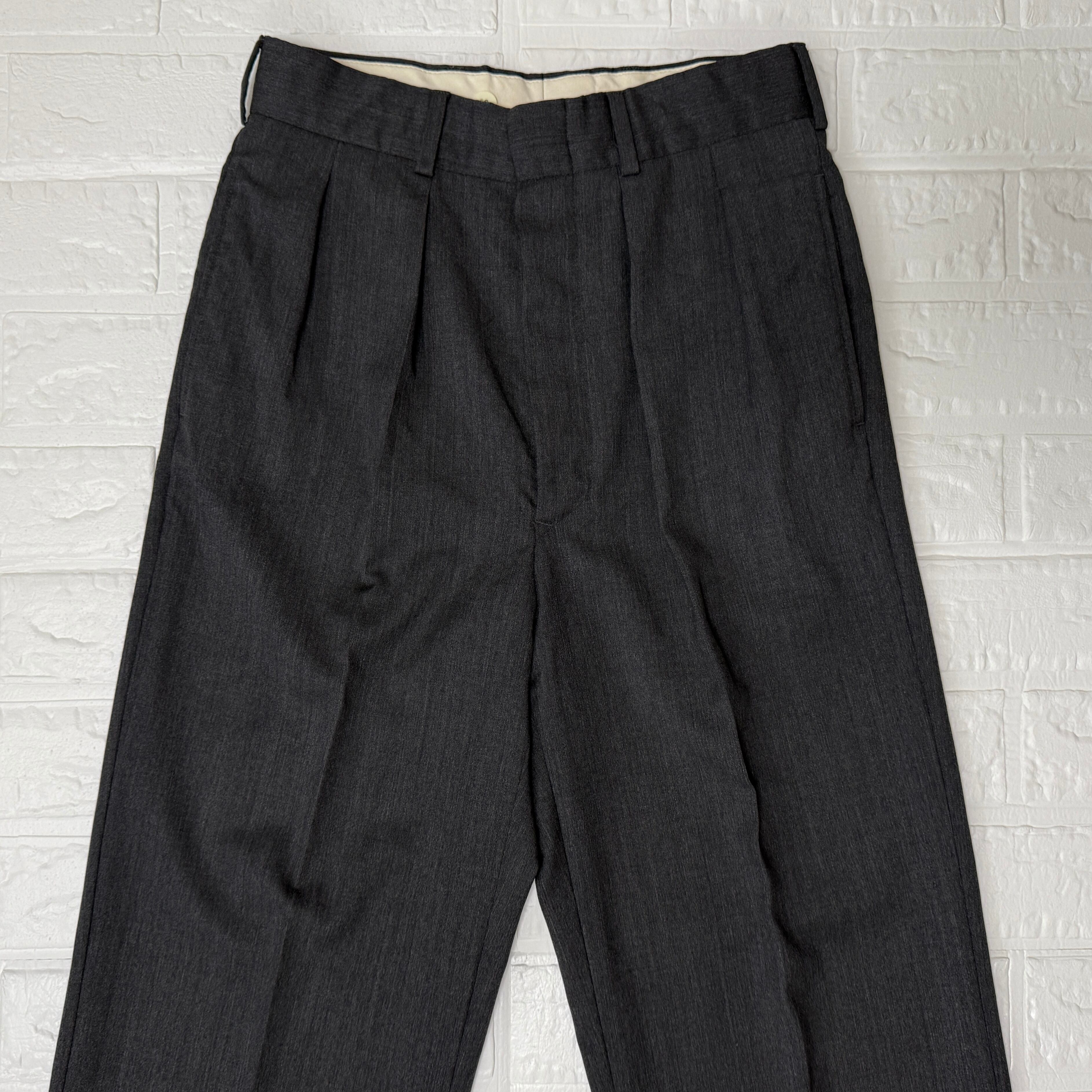 実寸:ウエスト69cm 股上:30cm 股下:69.5cm 渡り幅:30.5cm(股十字水平位置) 裾幅:23cm シングル仕上げ