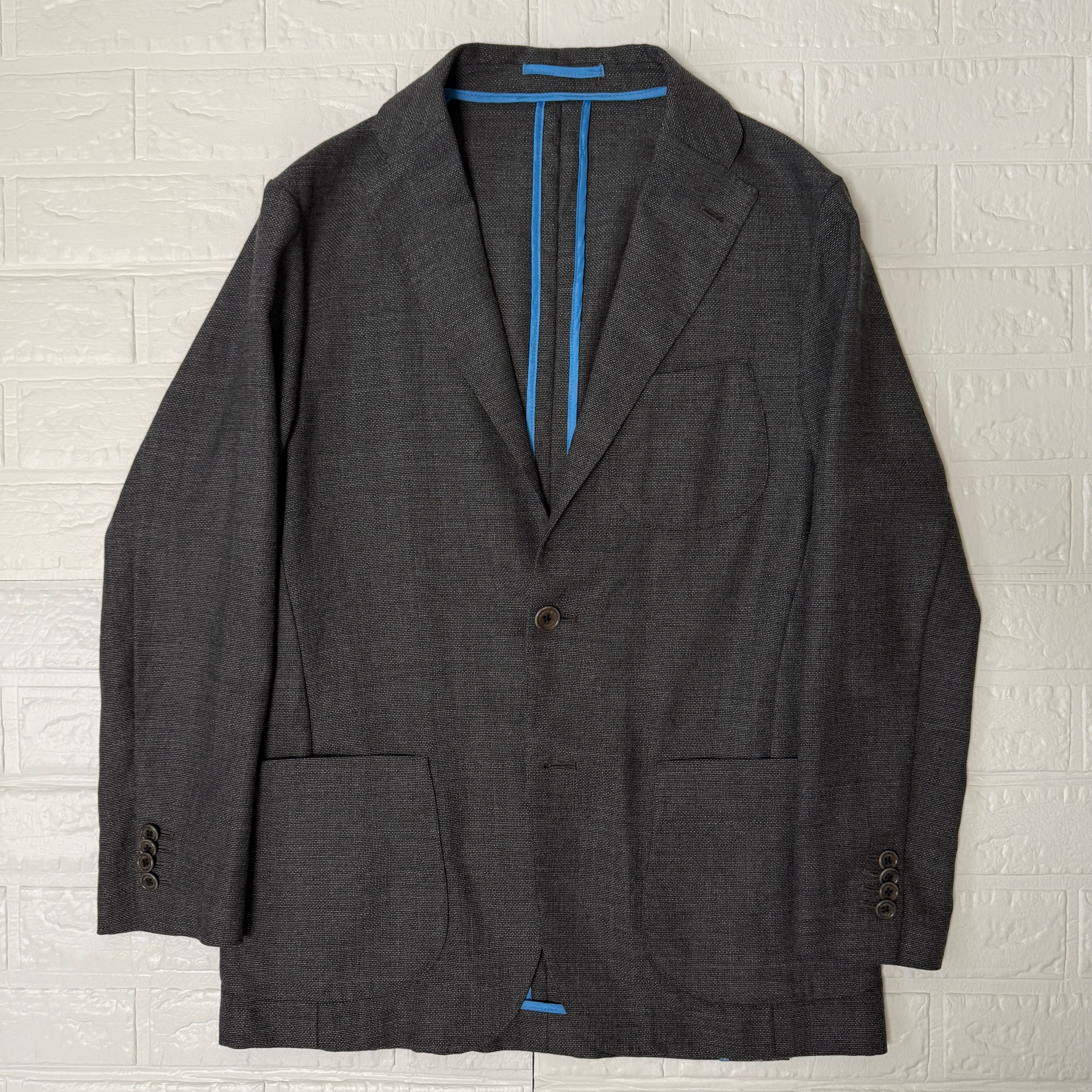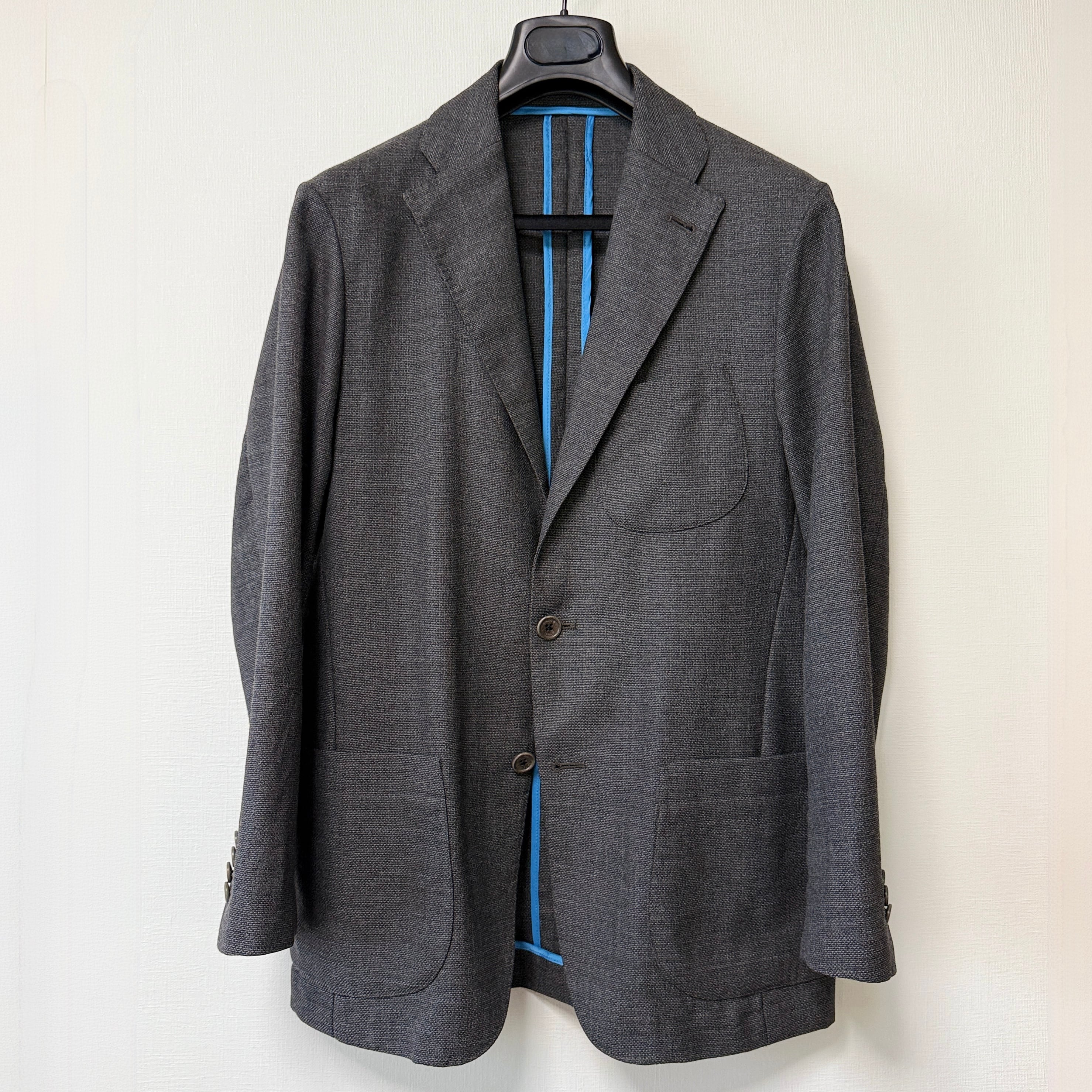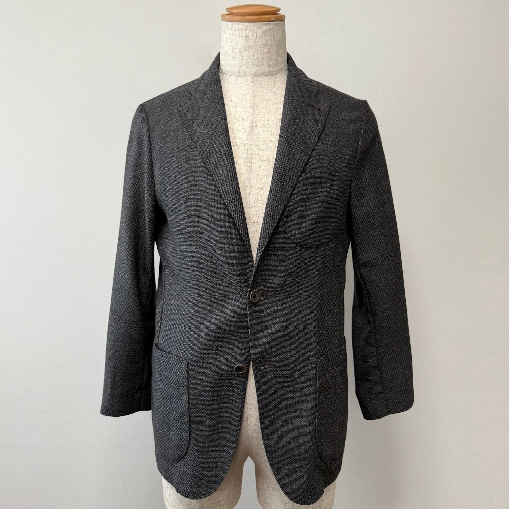 初夏から晩夏まで着用できるVitale Barberis Canonico社のホップサック生地を採用し、ドライな質感と通気性、シワの回復性がある一着です。