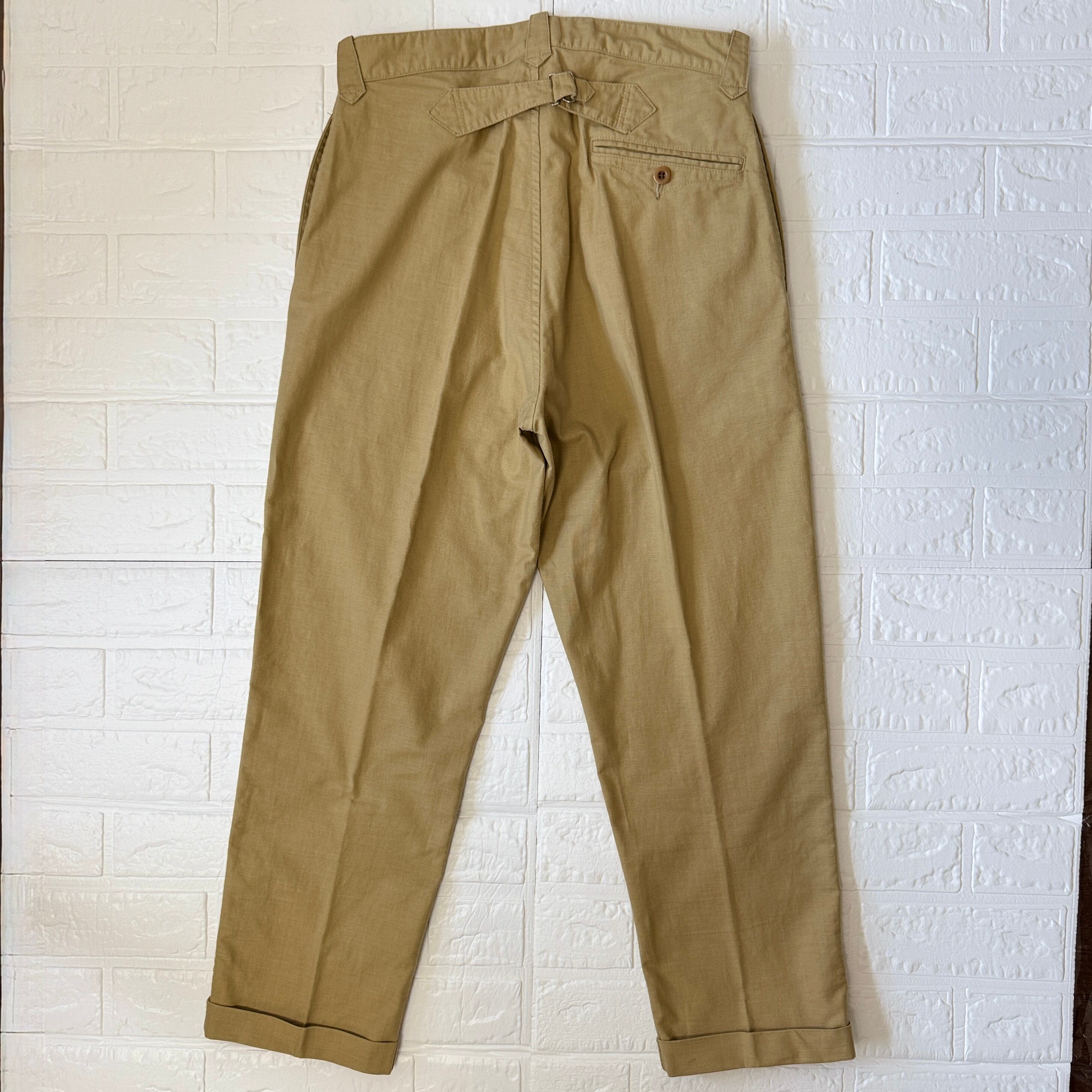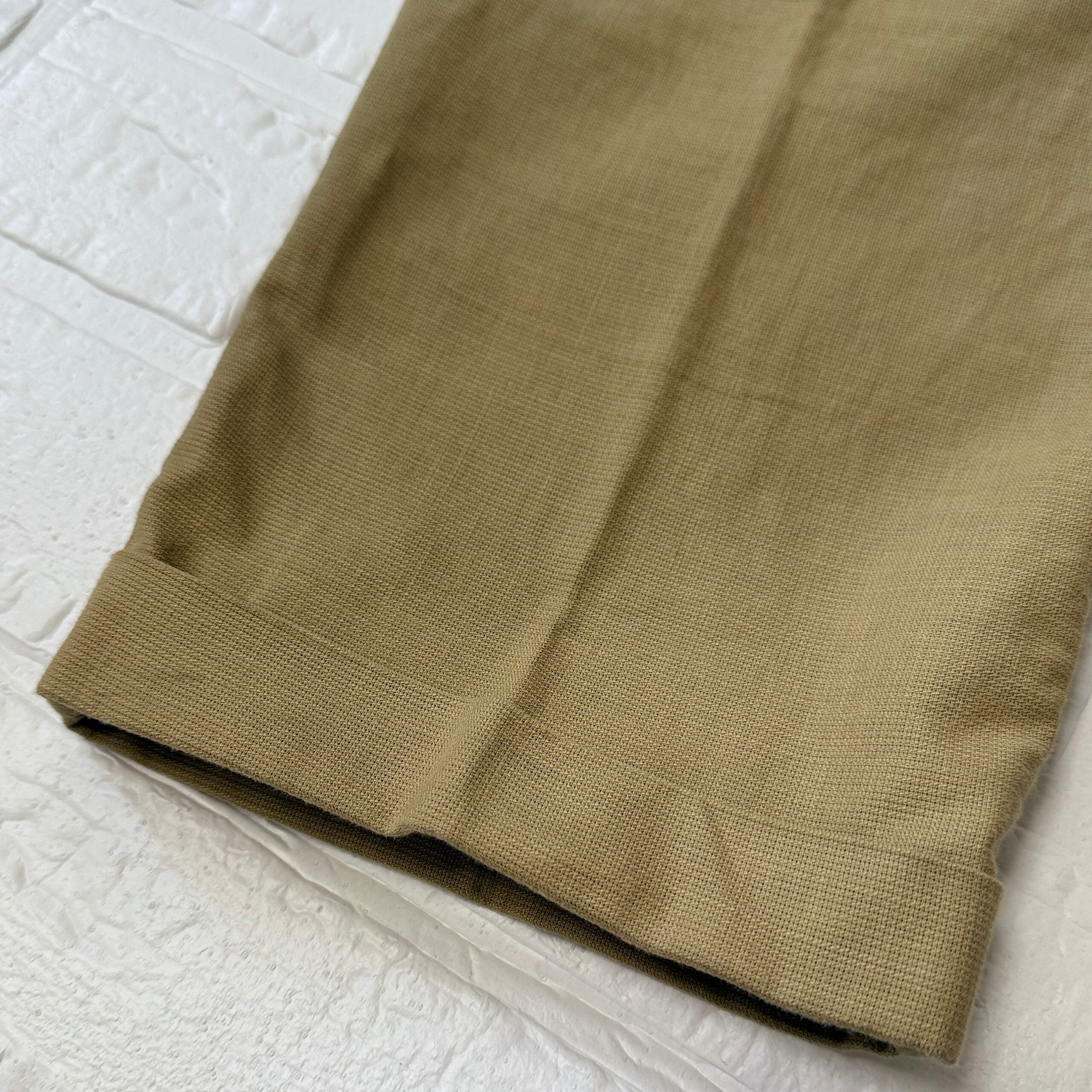 実寸:ウエスト80cm 股上:30cm 股下:64.5cm 渡り幅:30cm(股十字水平位置) 裾幅:19cm ダブル幅3cm糸留
