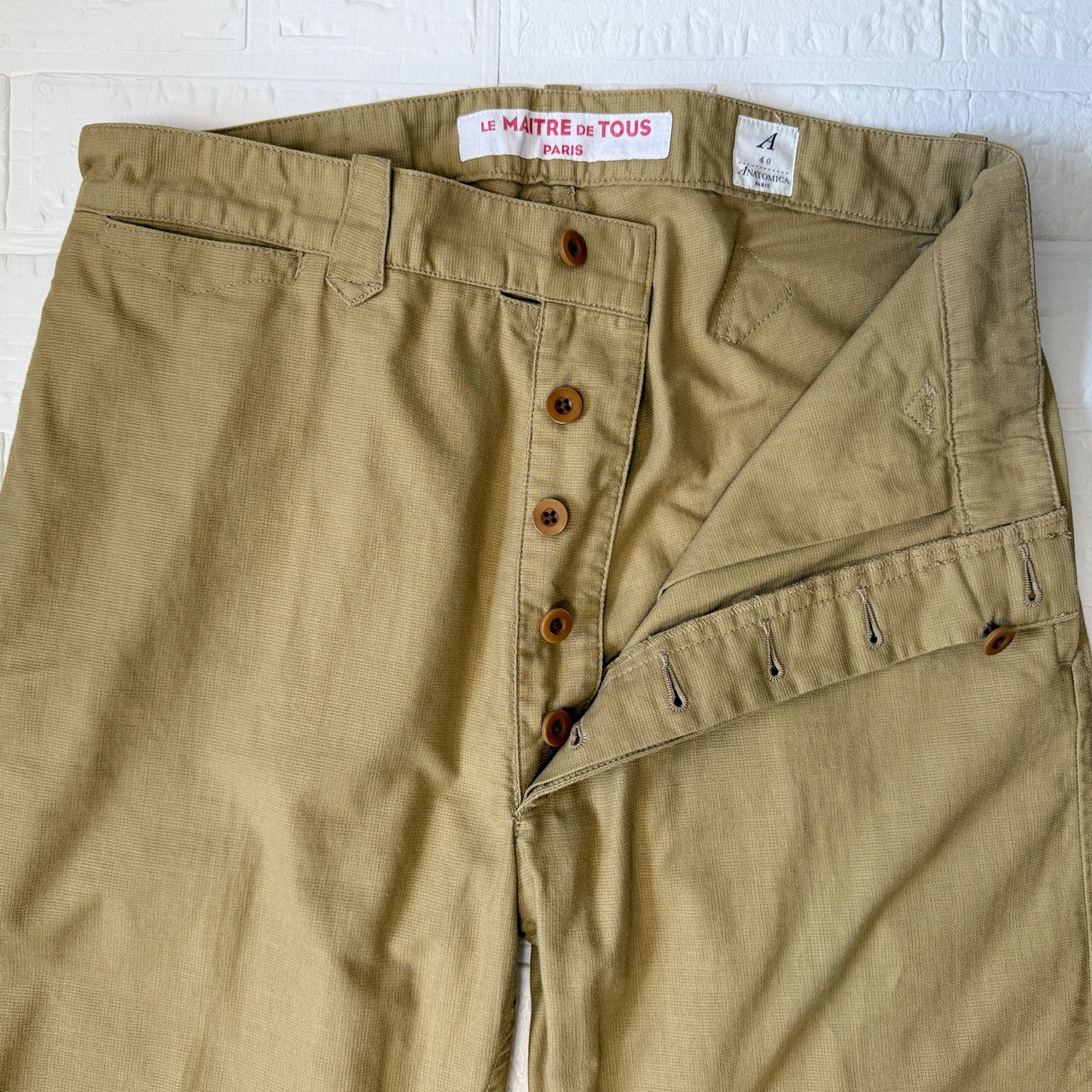 フレンチワーク/カジュアルテイストをベースとしながらも、裾へのテーパードが綺麗なシルエットとなっているアナトミカらしいほどよく洗練されたボトムスです。