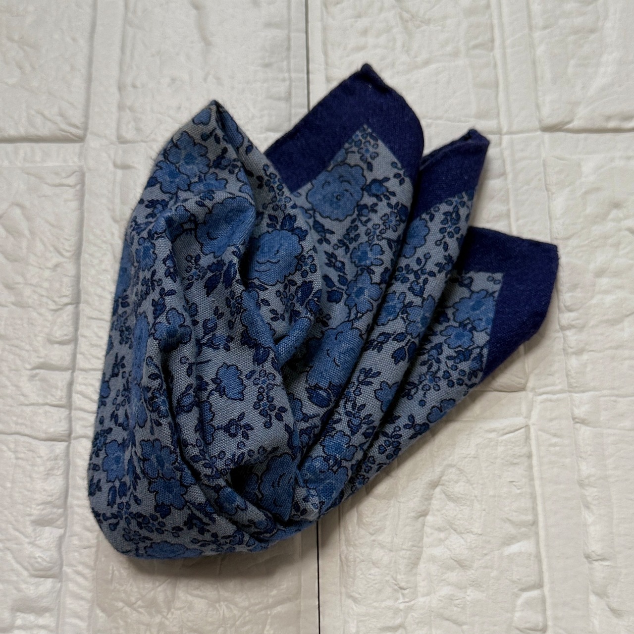 Stefano Cau フラワー モチーフ コットン ポケットチーフ (ブルー)