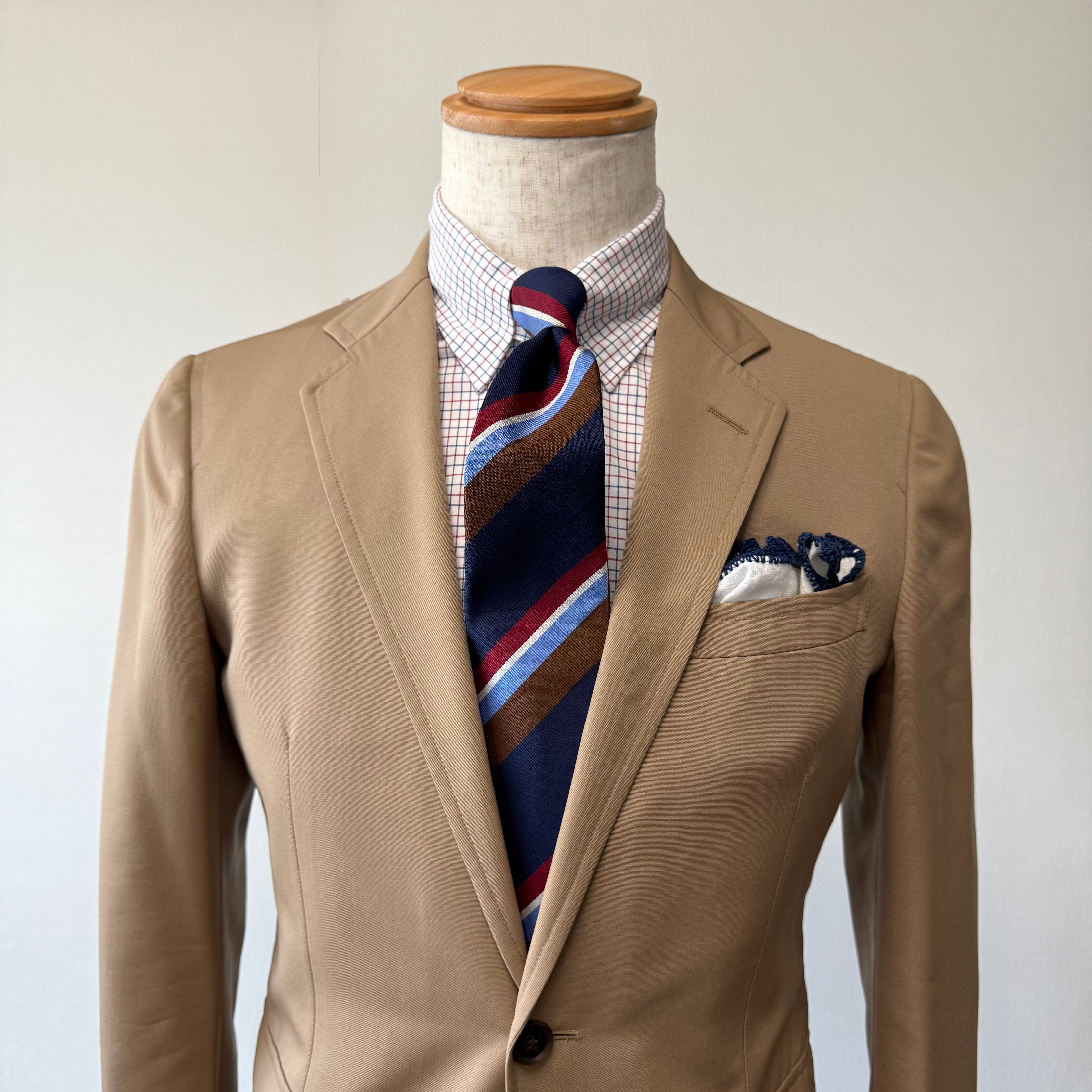 こちらの商品は、ブレザーやツイードジャケット、コットンスーツ等トラッドアイテムとの相性が非常に良い一着です。