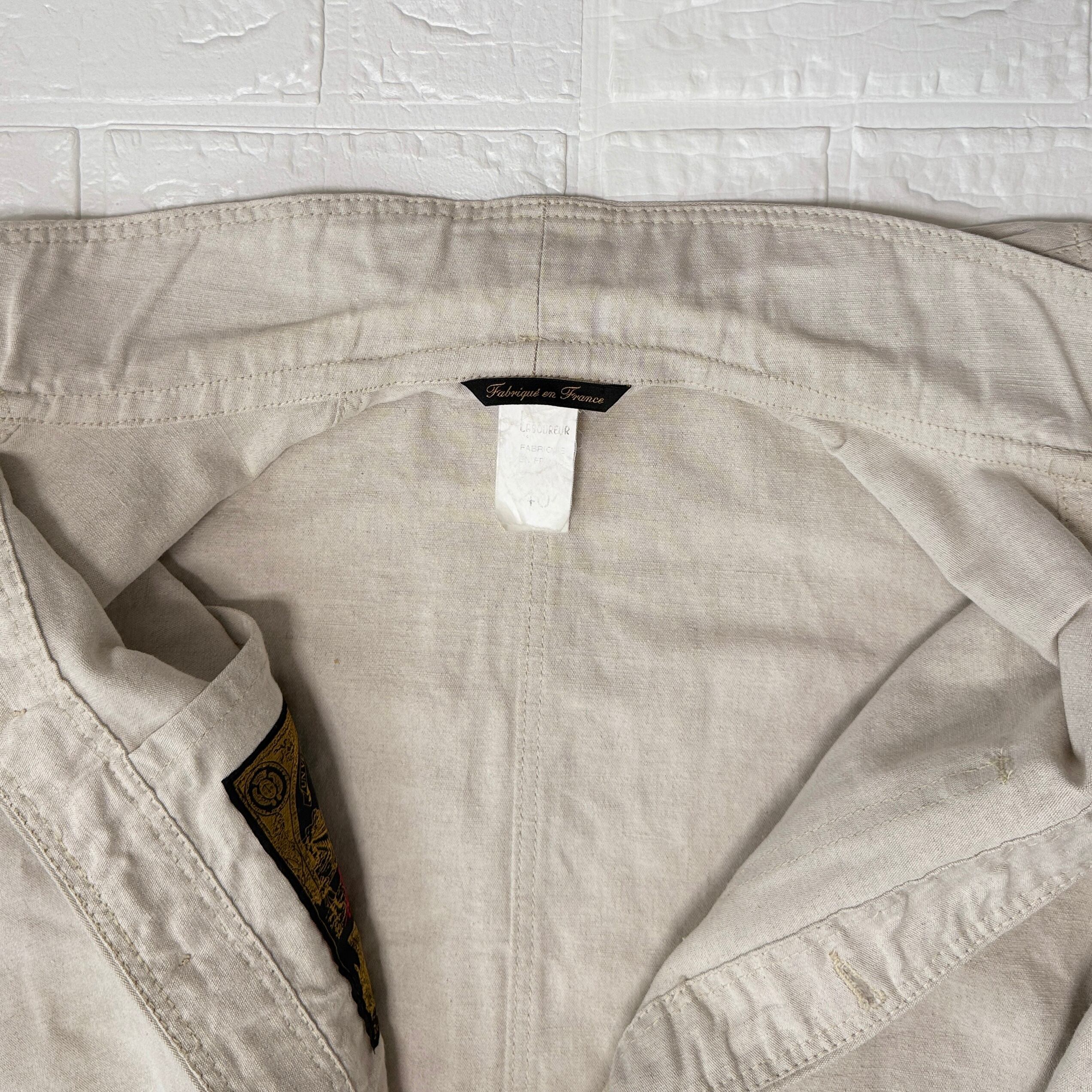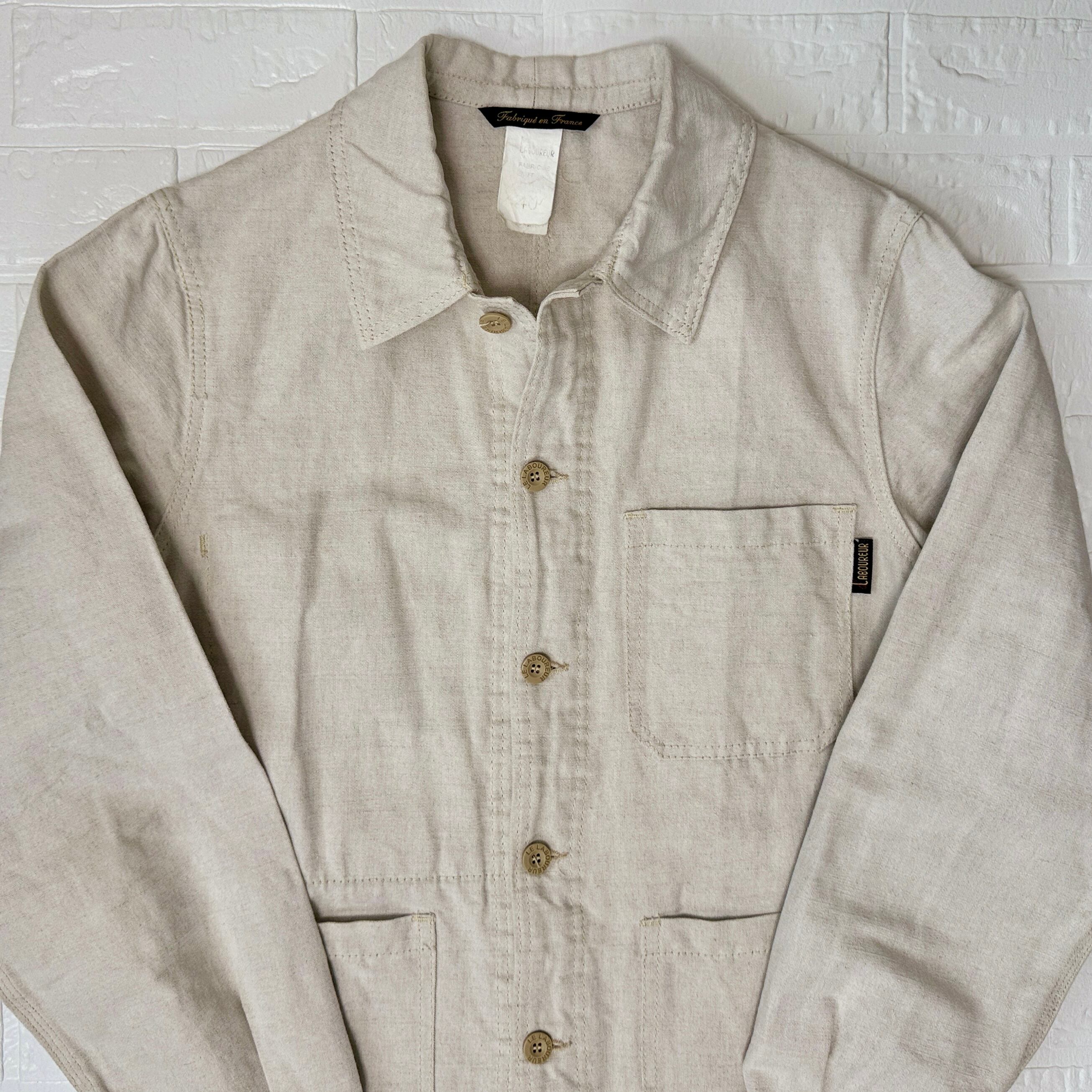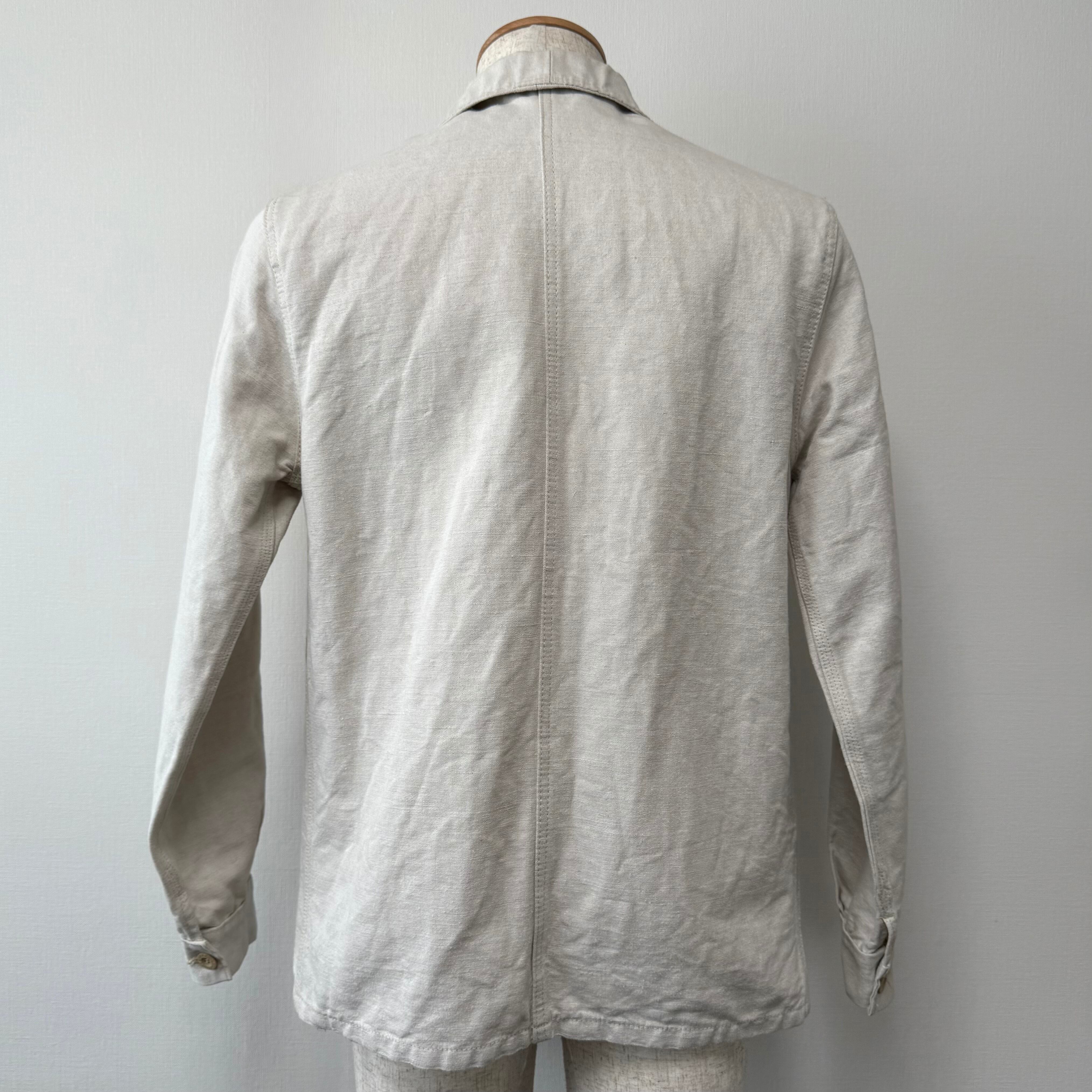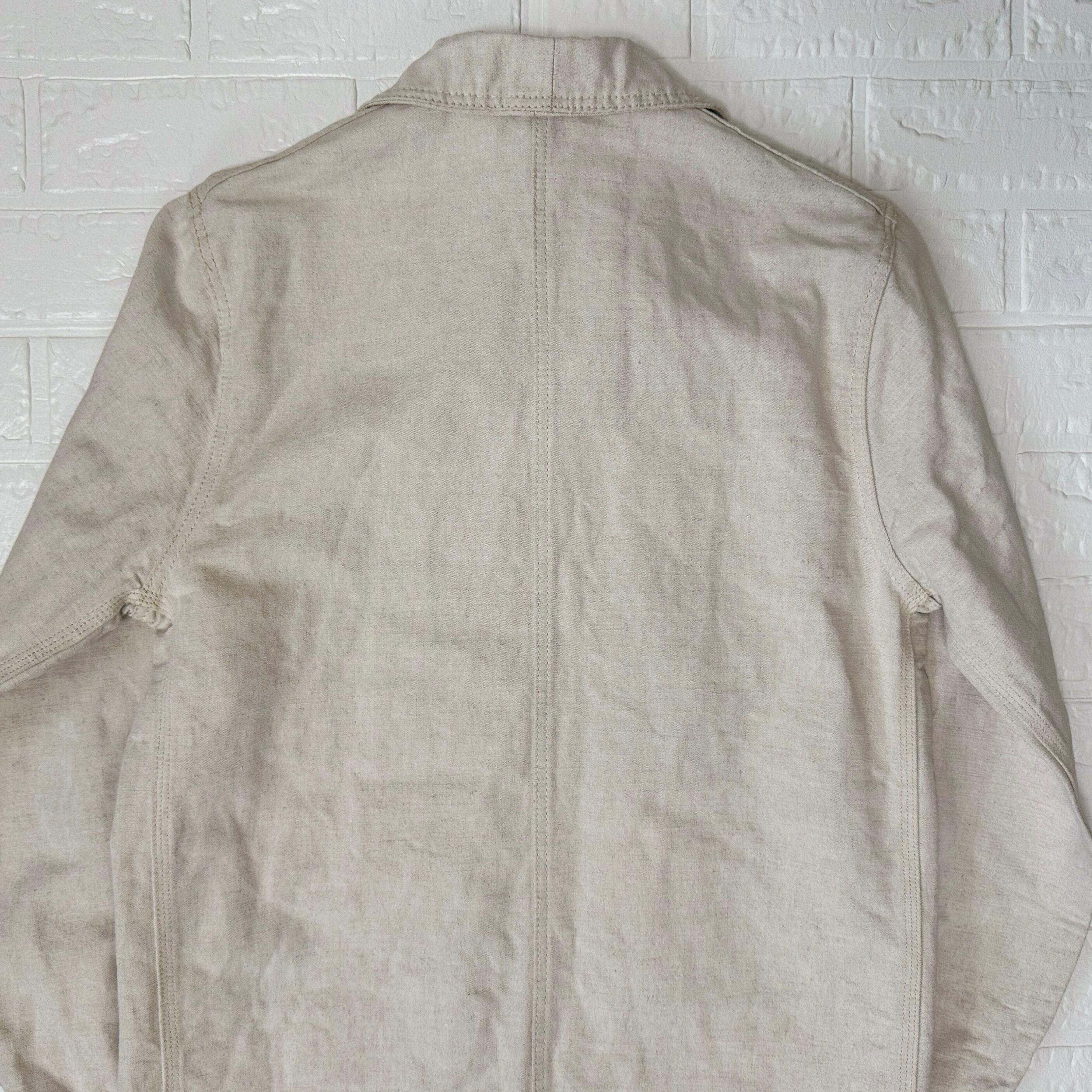 状態:生地の特性として毛羽立ちと皺があります。襟裏、袖口に僅かな汚れがあります。