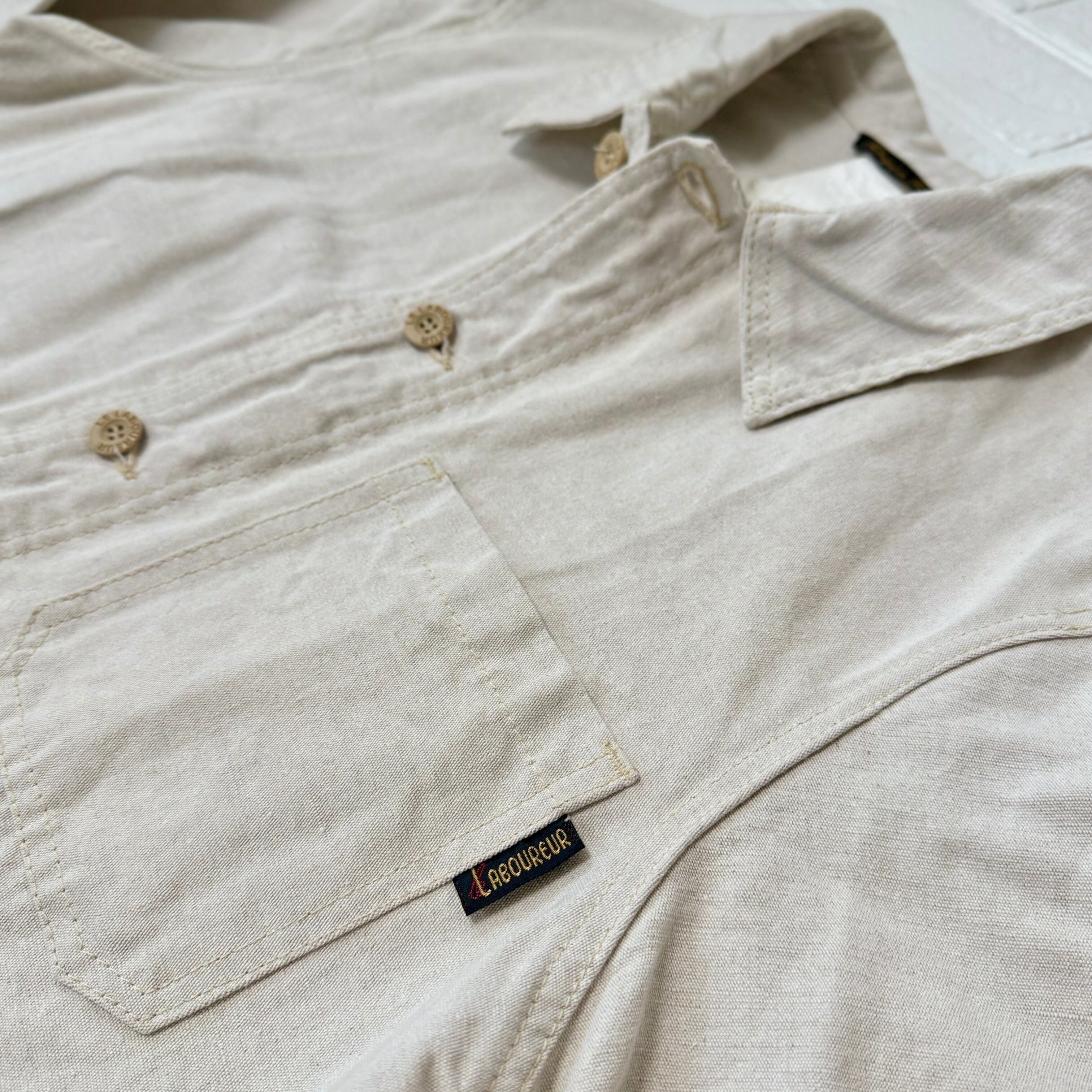 ドライなタッチと通気性ある着心地で季節をまたいで着用できるコットン×リネン生地のカバーオール。