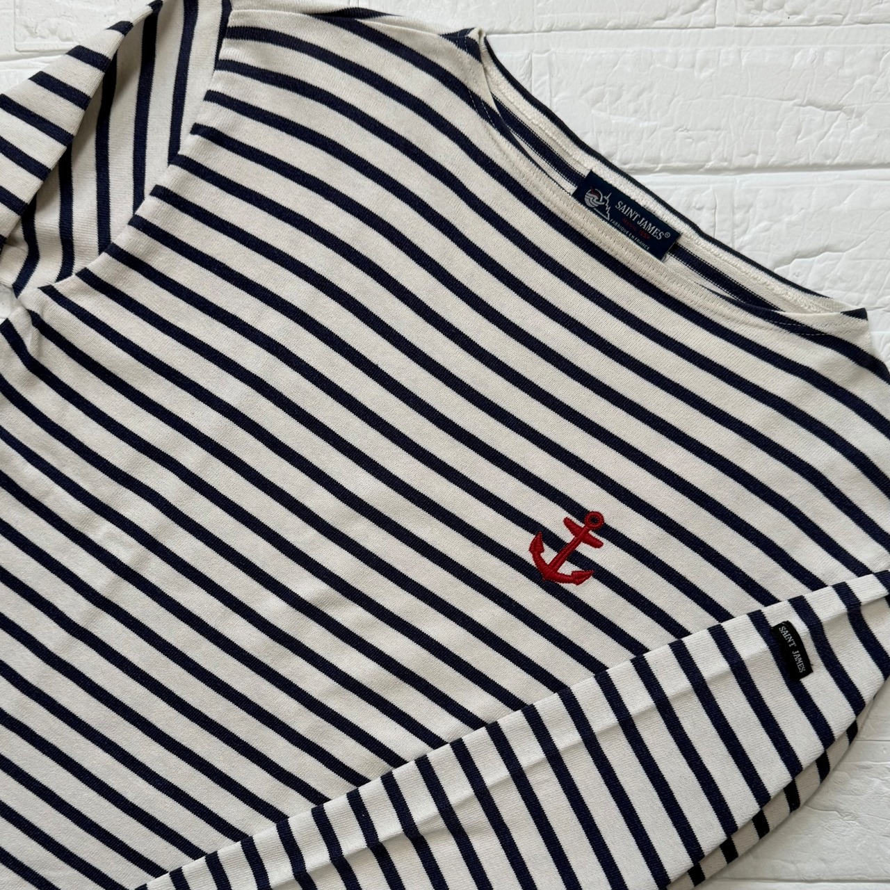 セントジェームス定番のネイビーボーダーバスクシャツ《ウエッソン》。