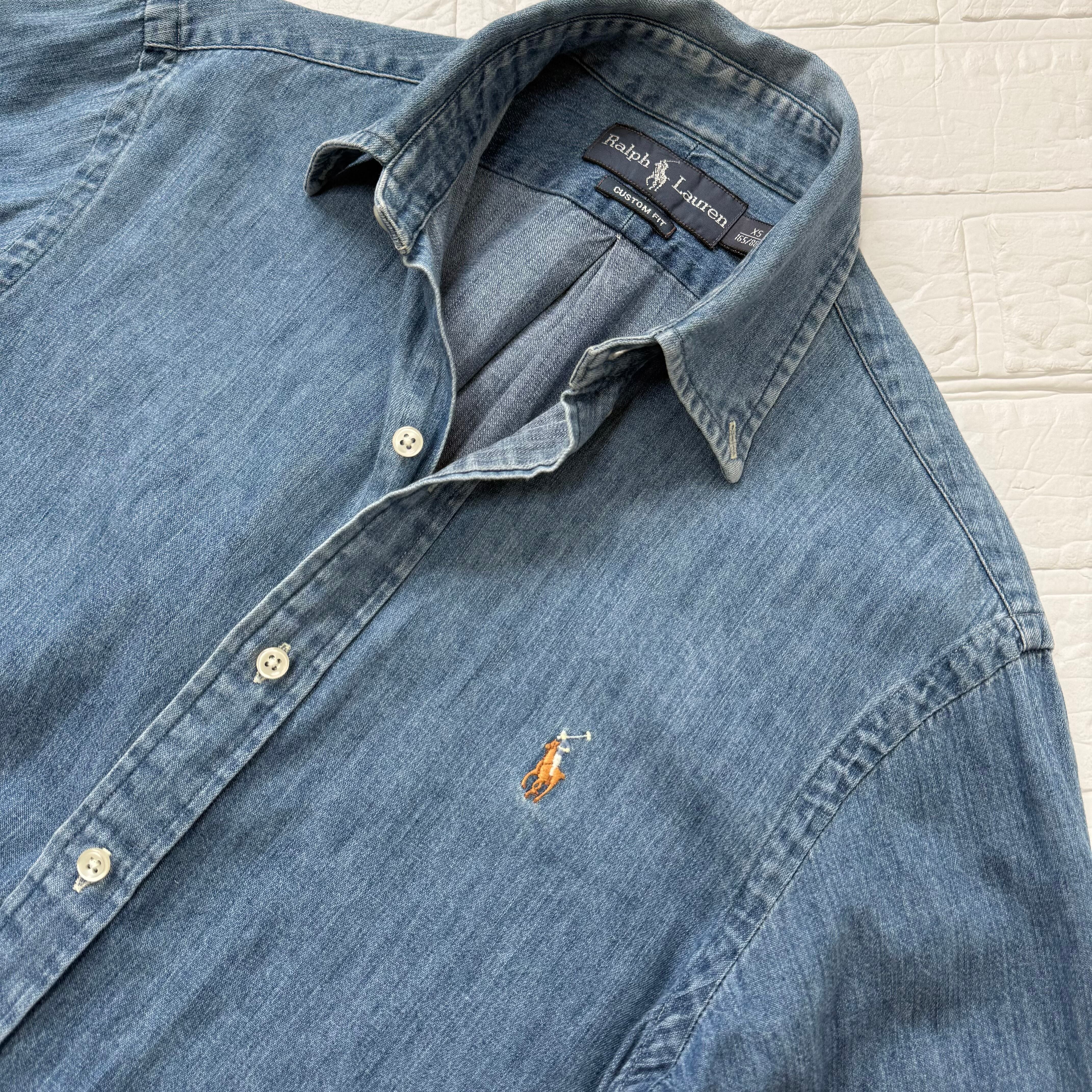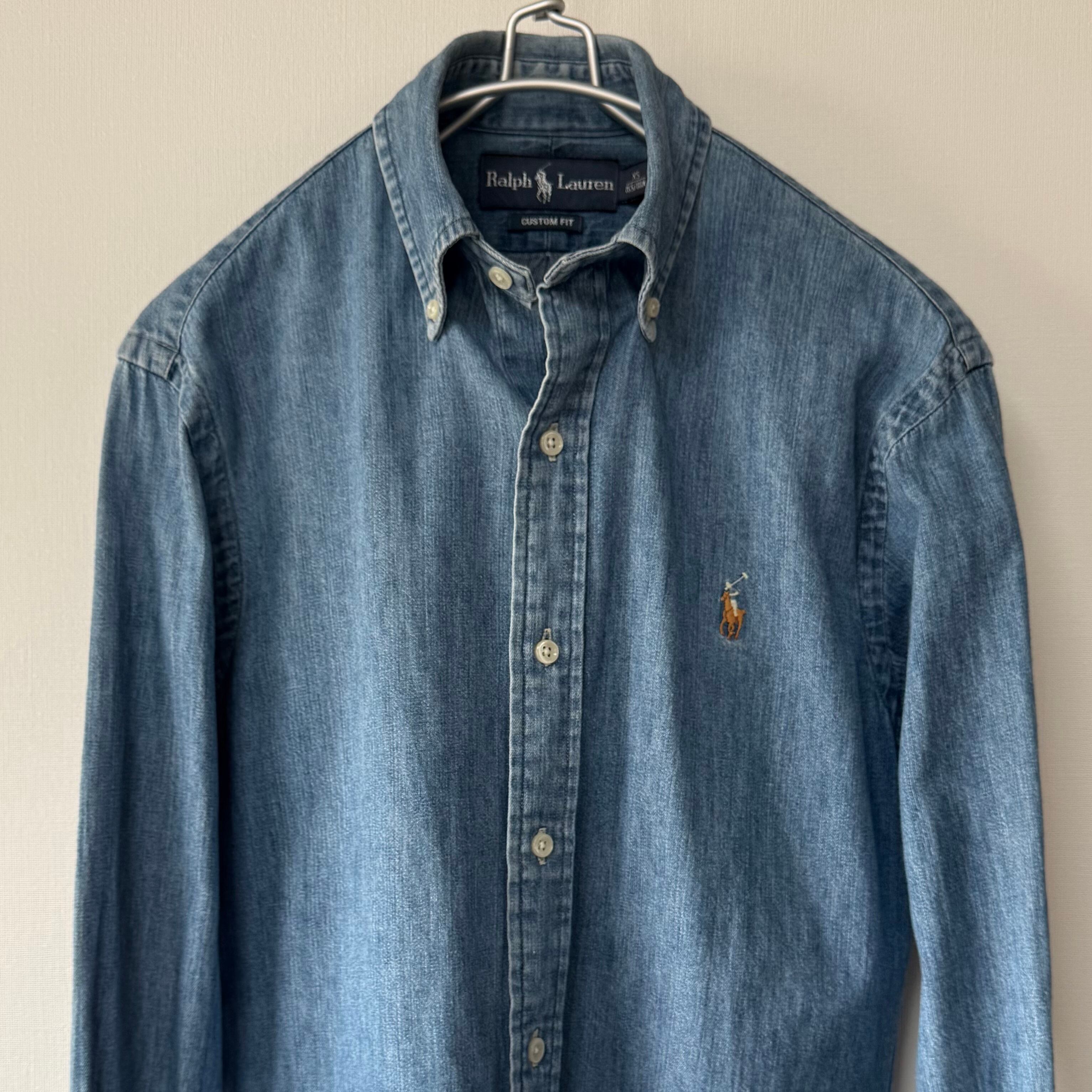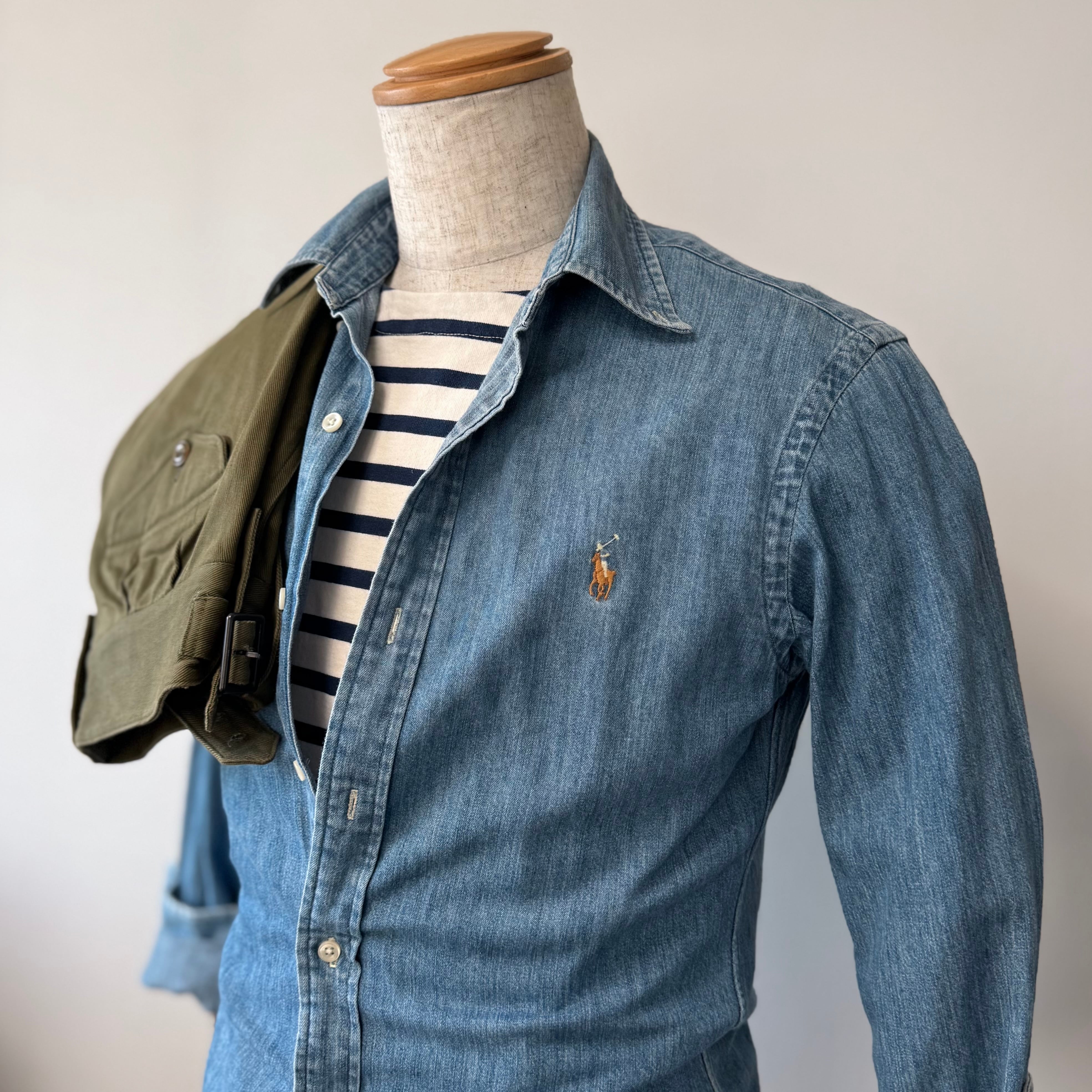 ラルフローレンらしいラフな雰囲気漂うデニムボタンダウンシャツ。