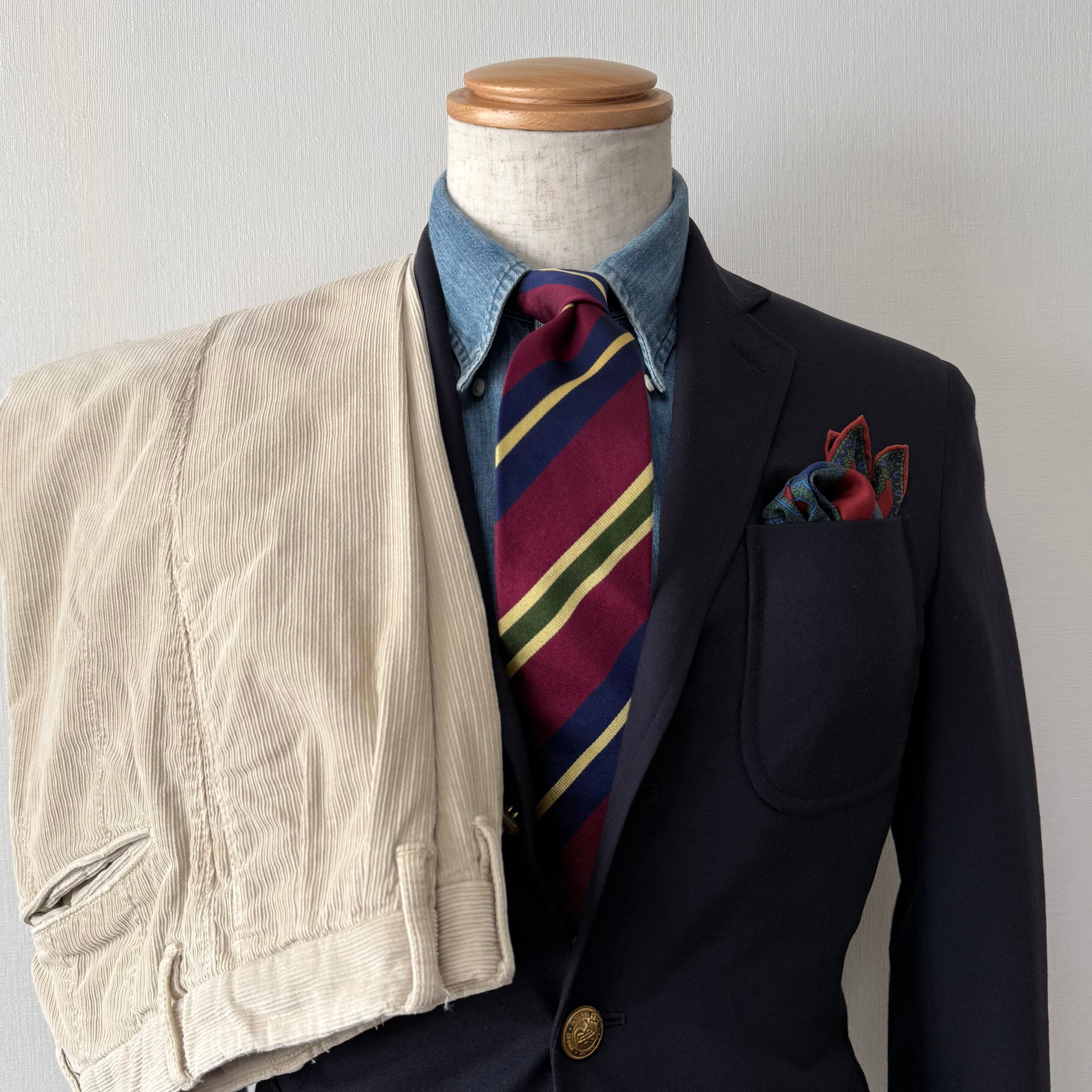 カジュアルスタイルはもちろん、ブレザーやカジュアルスーツでのタイドアップにも相性のよい一着。