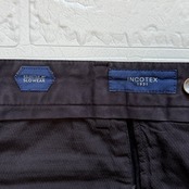 秋冬向けのやや厚手のツイルコットン生地に、ポリウレタン混のストレッチ性がある履き心地です。