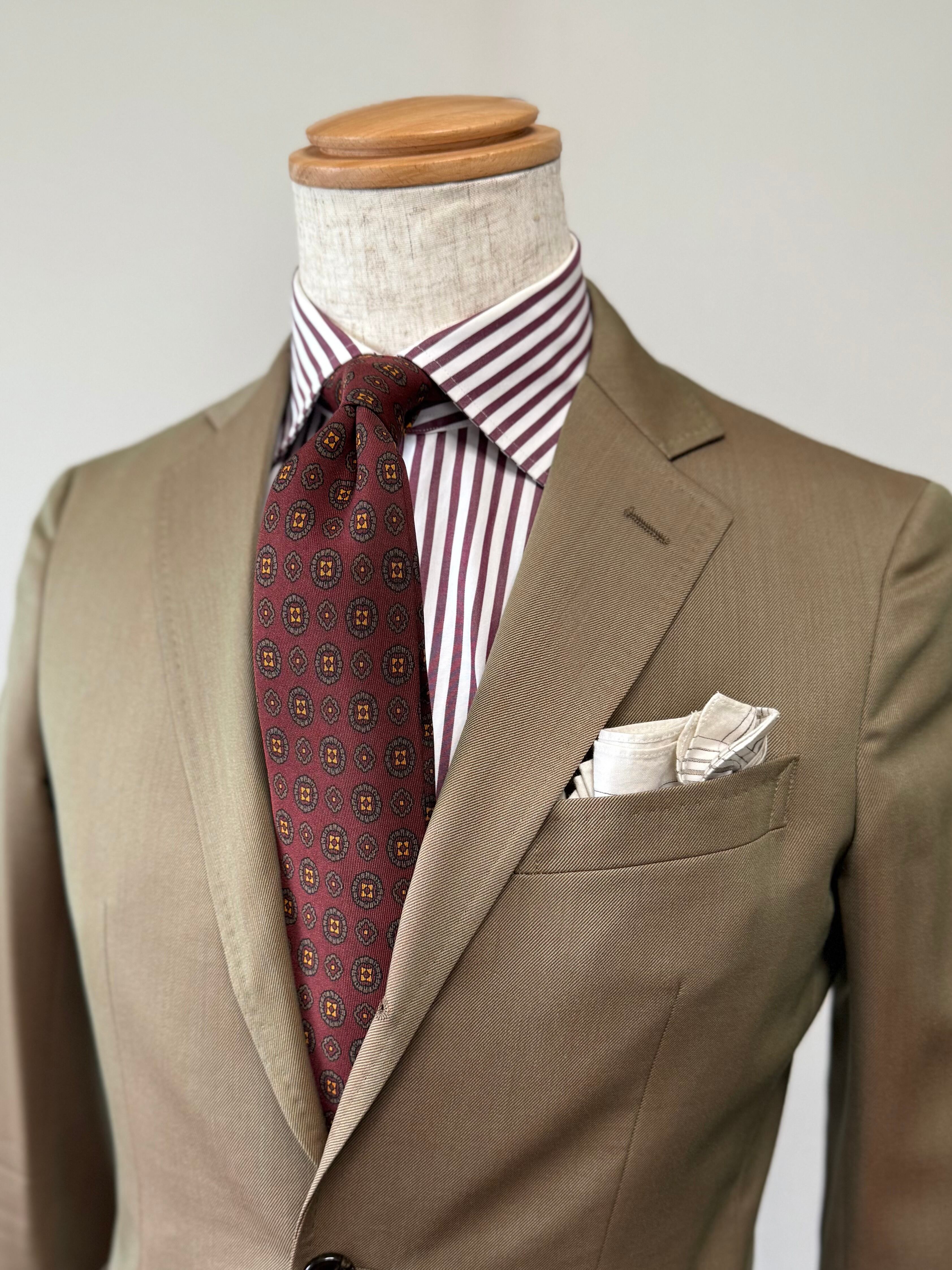 ツイードやコーデュロイ、フランネル生地のスーツ/ジャケットにも相性良好なクラシックでスポーティな一本です。
