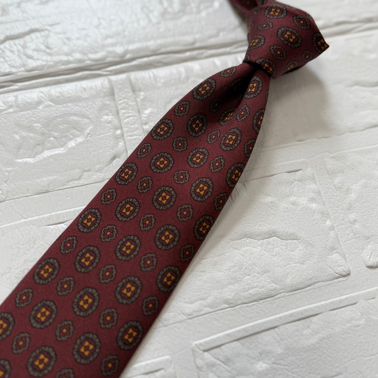 秋冬のドレススタイルにマッチする深みのあるエンジ(バーガンディ)とブラウン×オレンジの色柄色。(2、7枚目画像が実物に近い色となります)