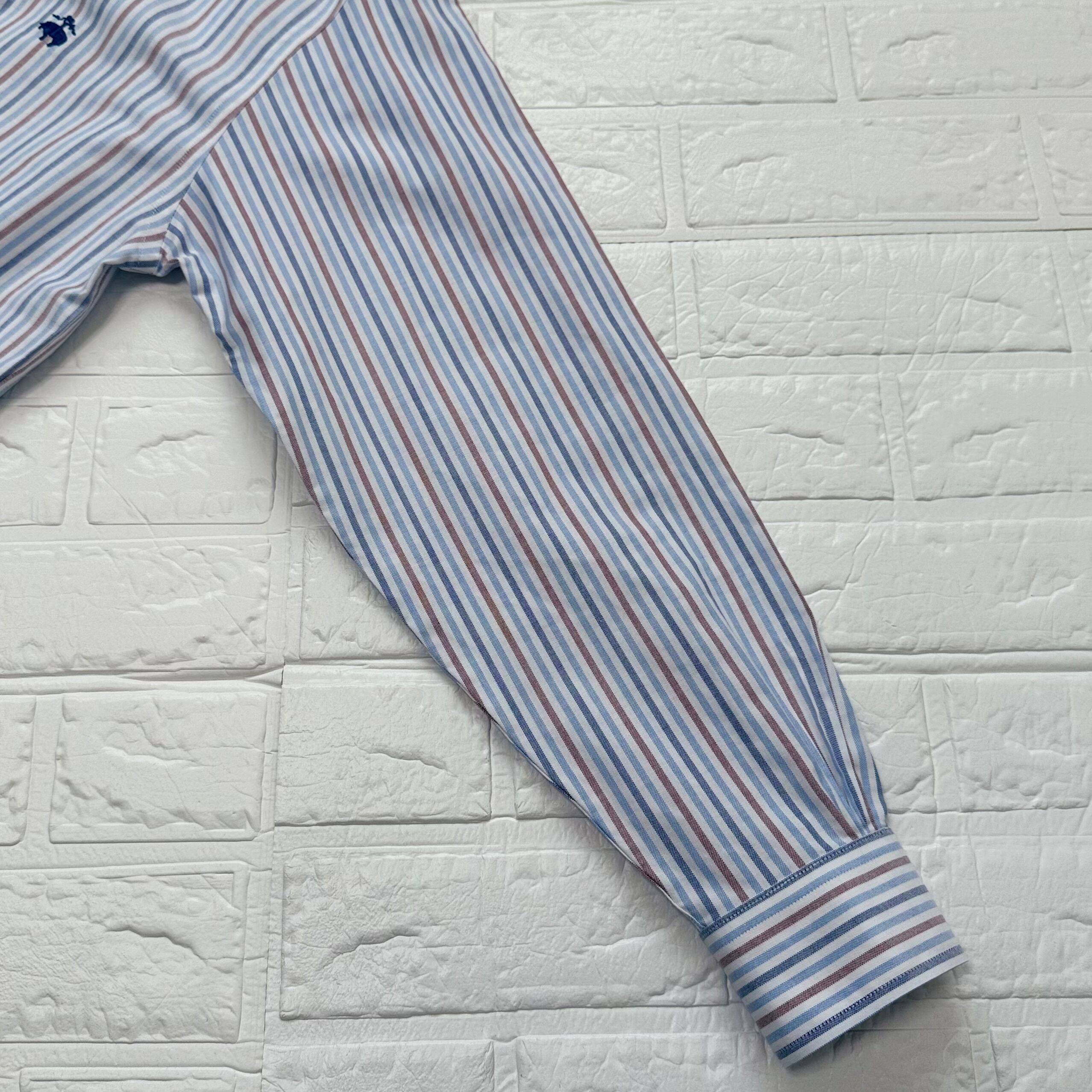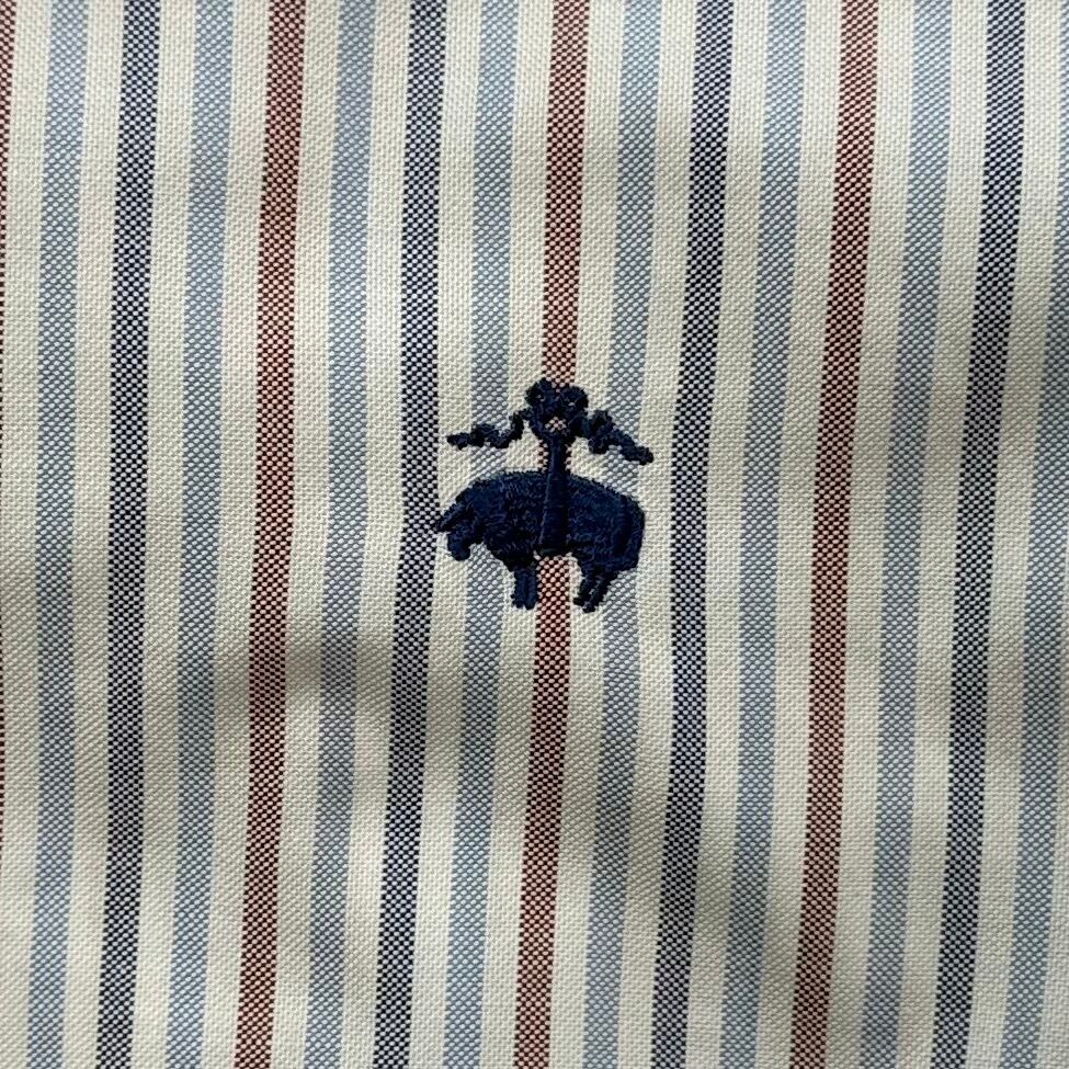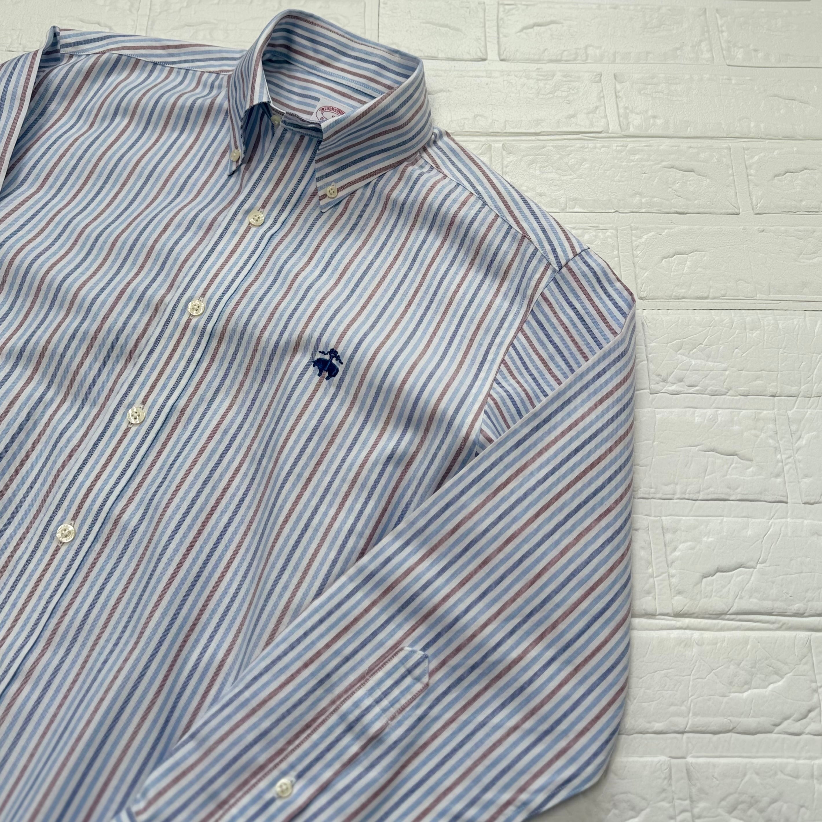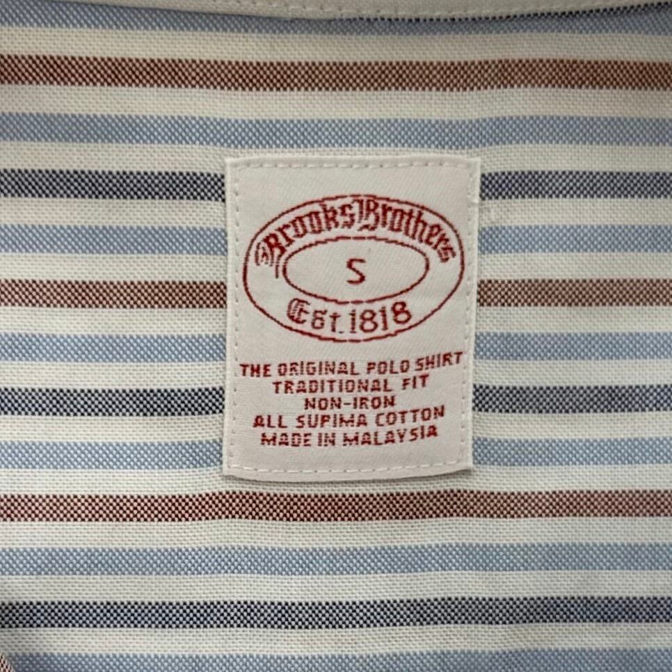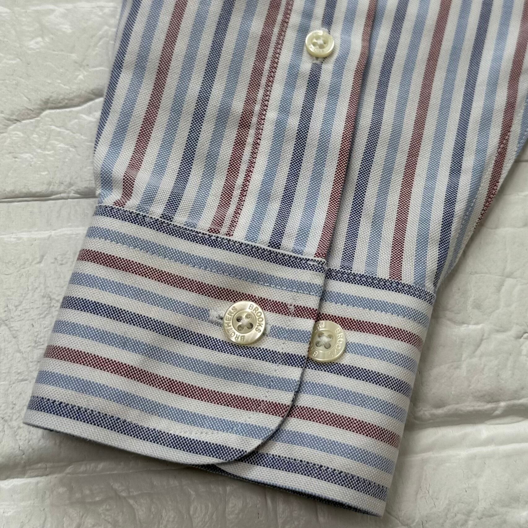 Brooks Brothers ストライプ オックスフォードボタンダウンシャツ (レッド×ネイビー×サックスブルー、サイズS)