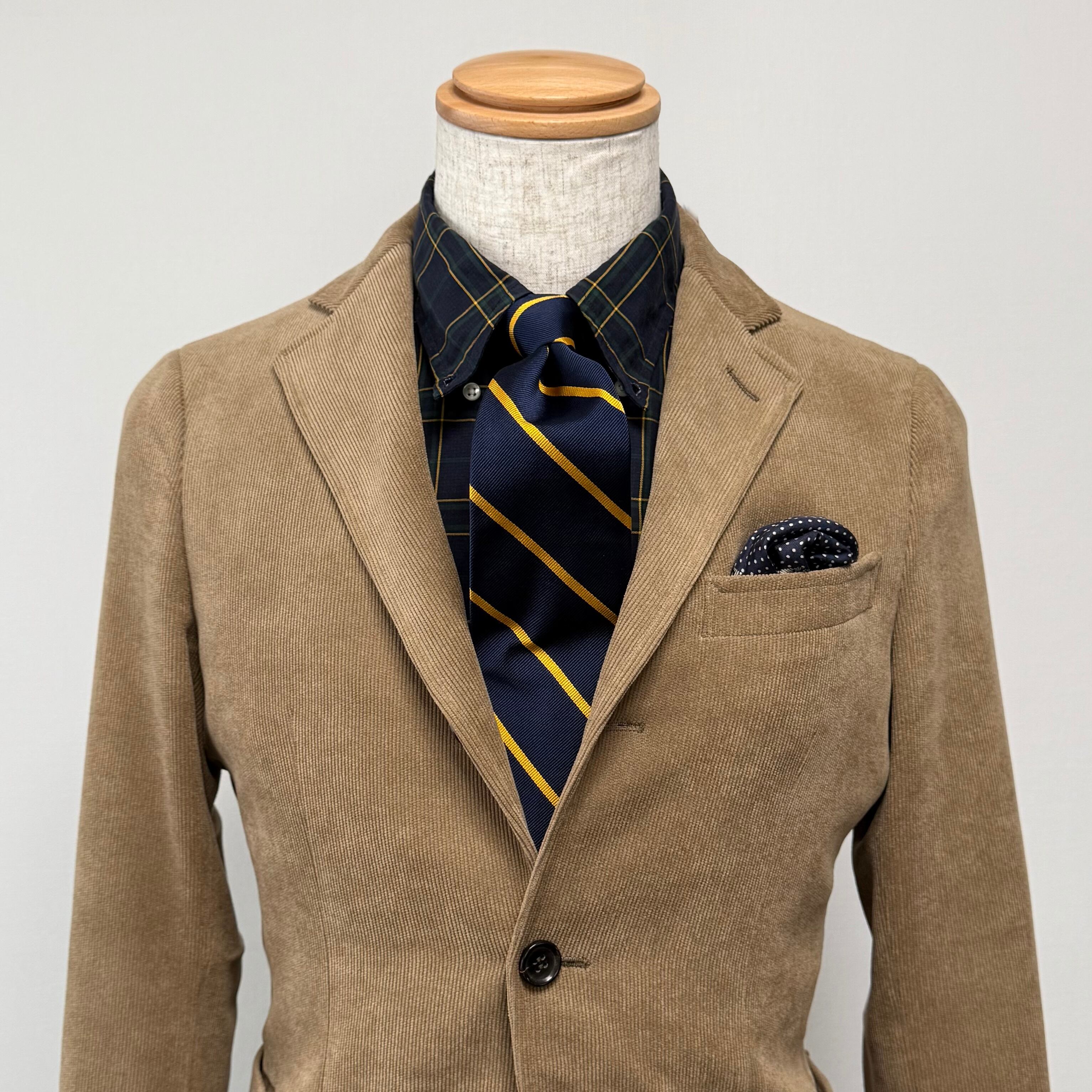 ラフなカジュアルコーディネートだけでなく、ブレザーやツイード/コーデュロイジャケットでのタイドアッププレッピースタイルにも相性◎。