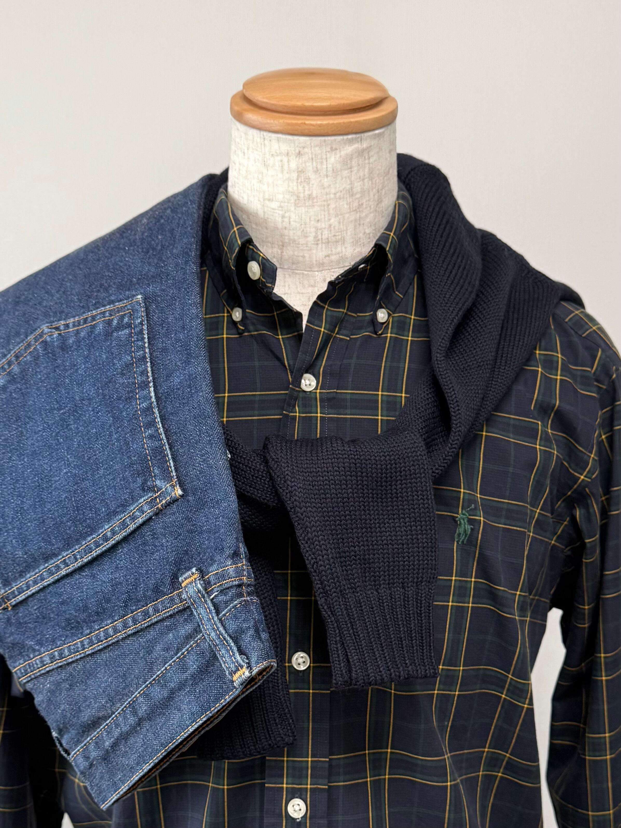 トラッドなタータンチェックを配した90年代インド製《ラルフローレン》ボタンダウンシャツ。