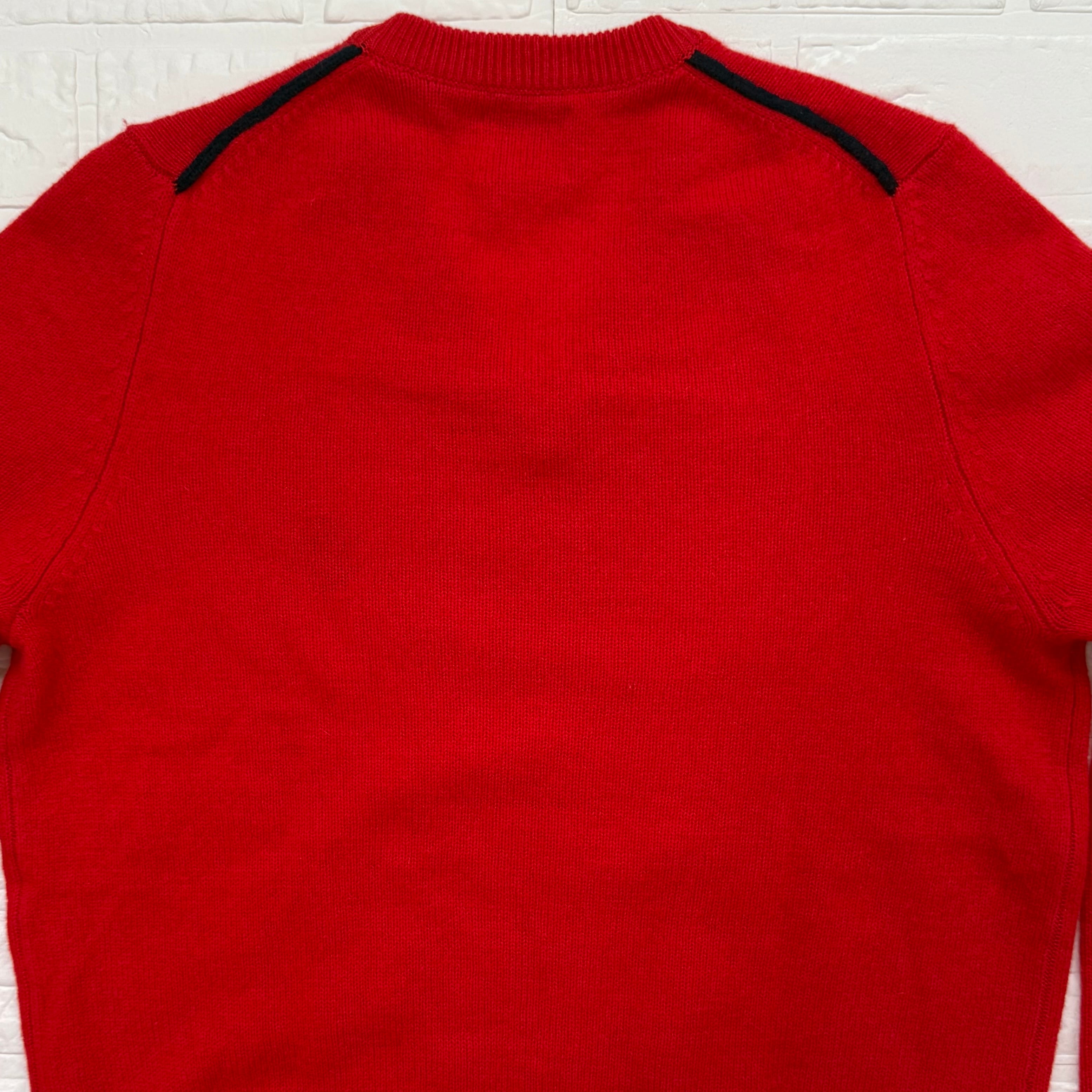アメリカントラッドらしい軽快な赤色をベースに左胸なワンポイント刺繍と背面肩口に切替デザインが入っております。