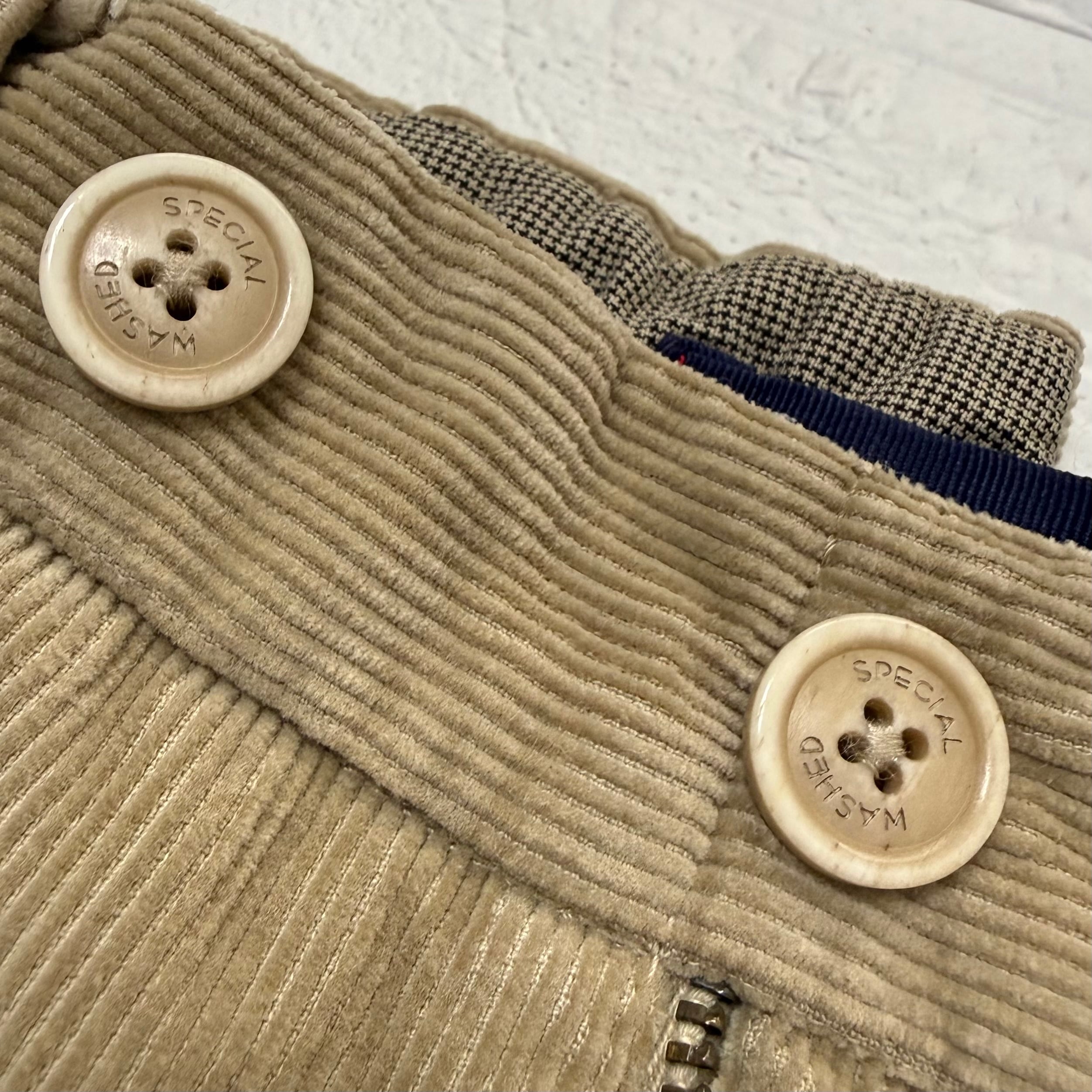 シンプルなベージュの細畝コーデュロイパンツは、暖かさを感じながら秋冬らしいコーディネートをお愉しみいただきたい定番的な一着です。