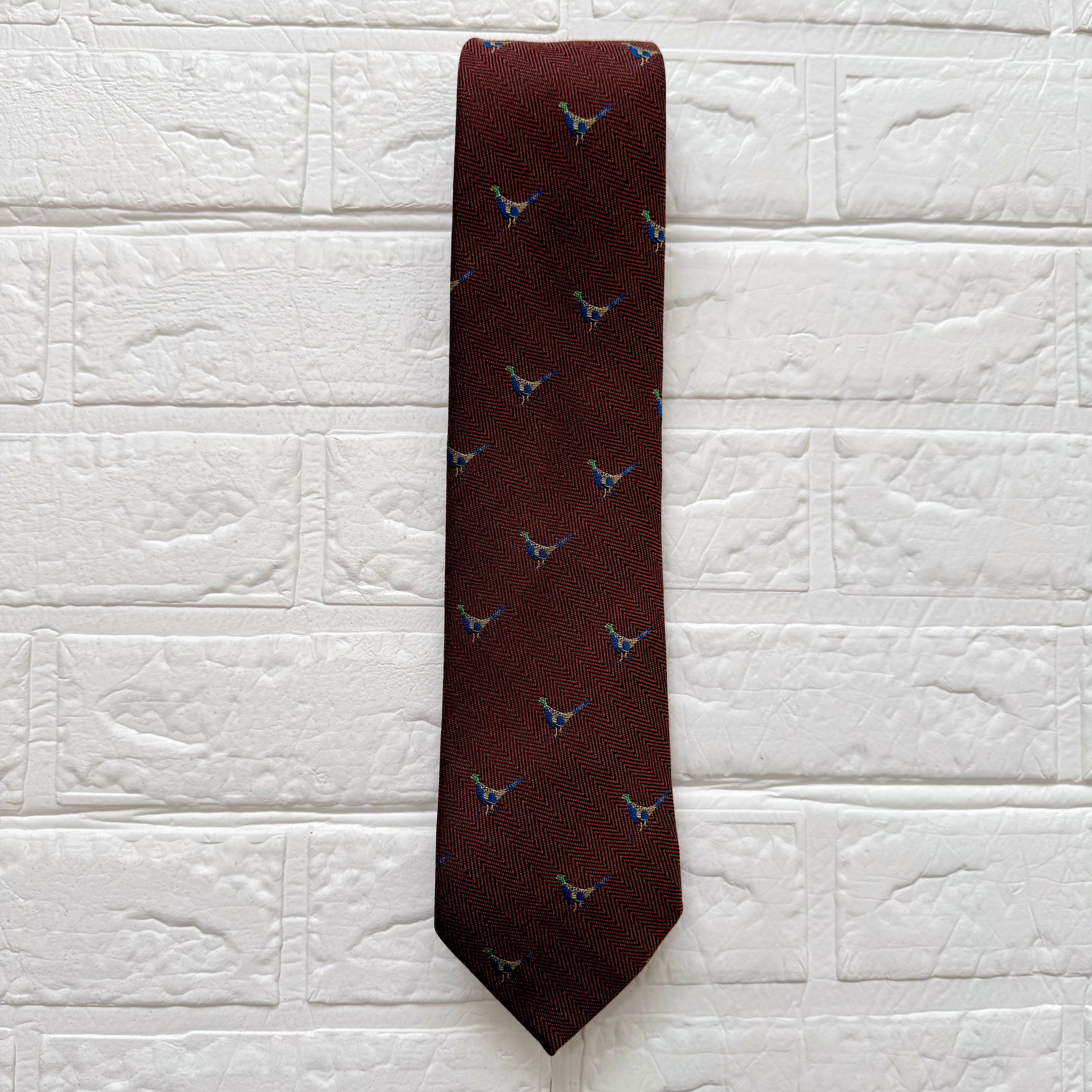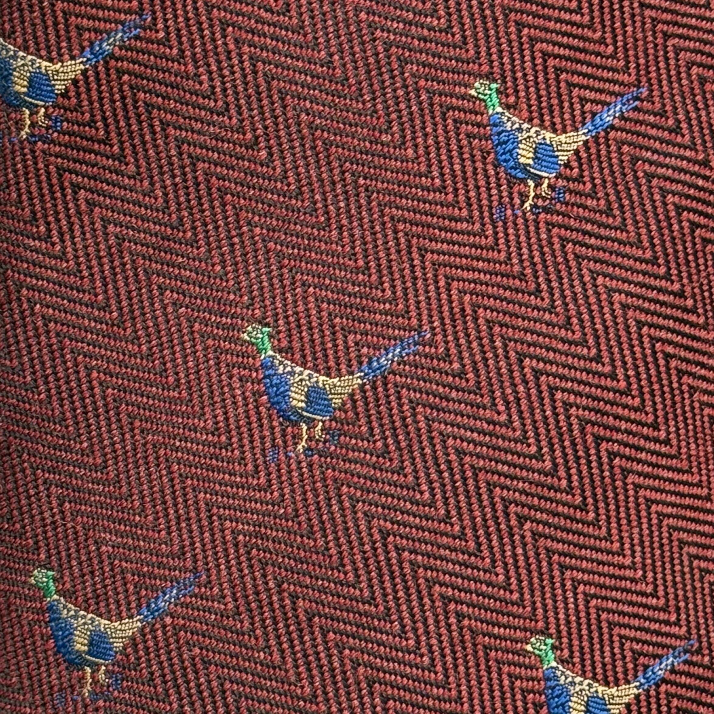 トラッドらしい鳥柄(キジ)刺繍の入ったウールタイ。