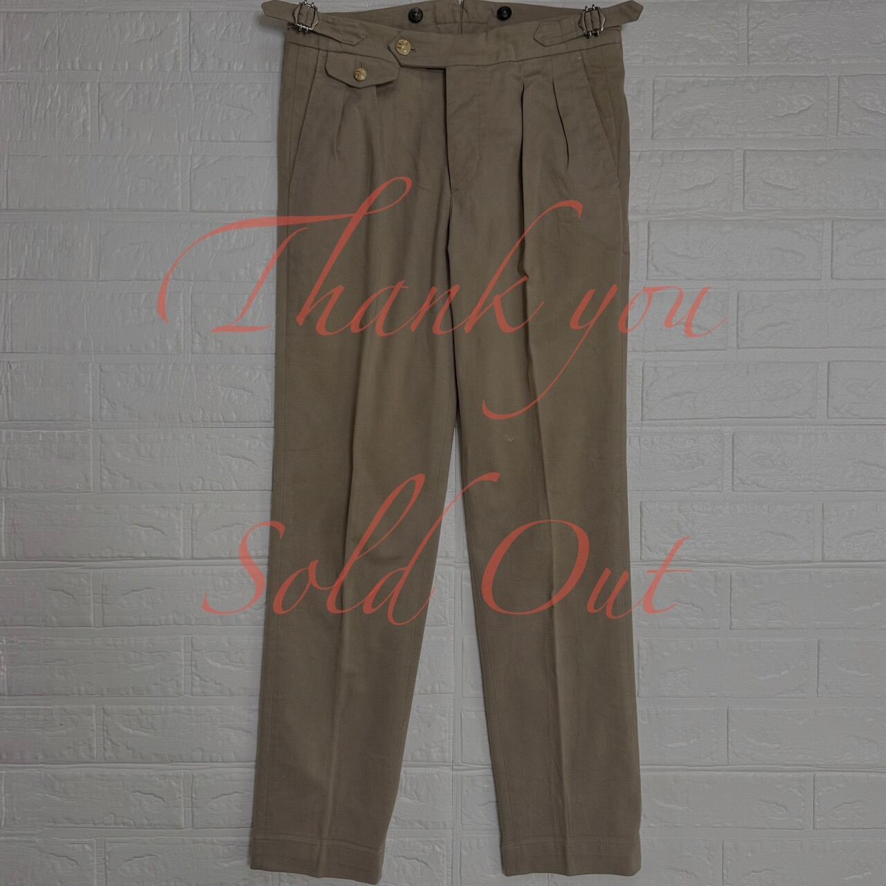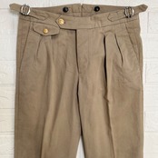 2インプリーツ、サイドアジャスター仕様のコットントラウザーズ。