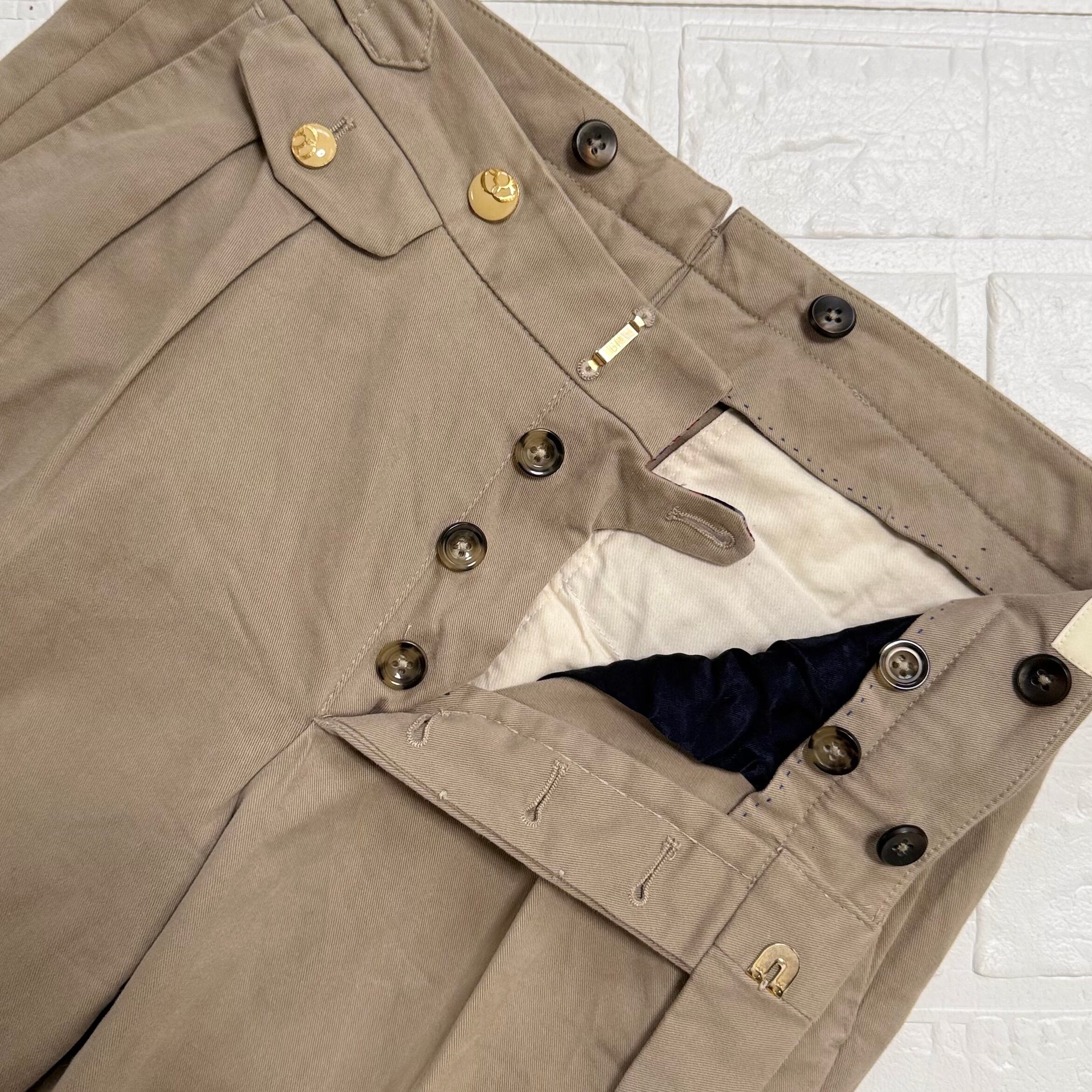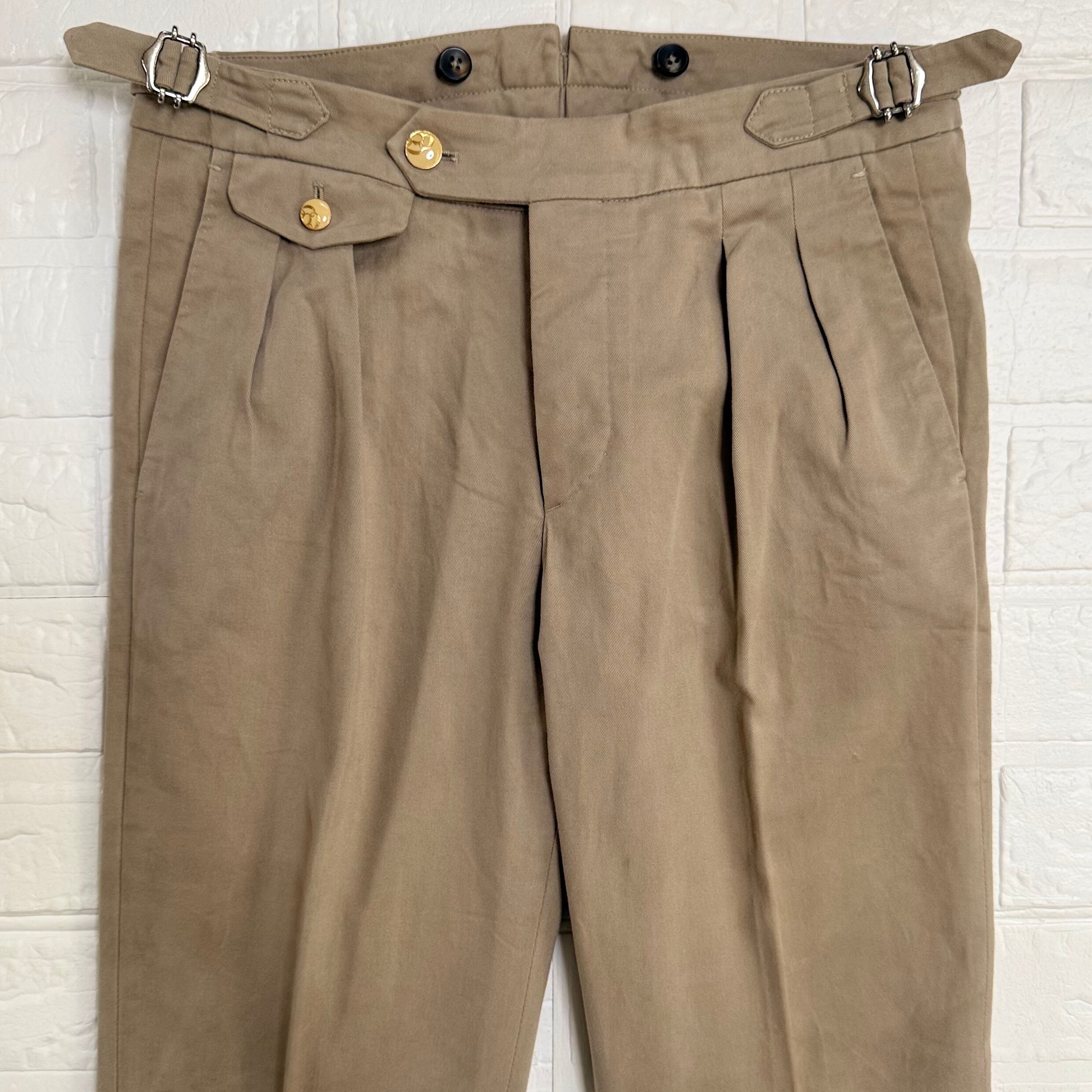 GTA 2プリーツ サイドアジャスター コットントラウザーズ (ベージュ、サイズ42、XSサイズ相当)