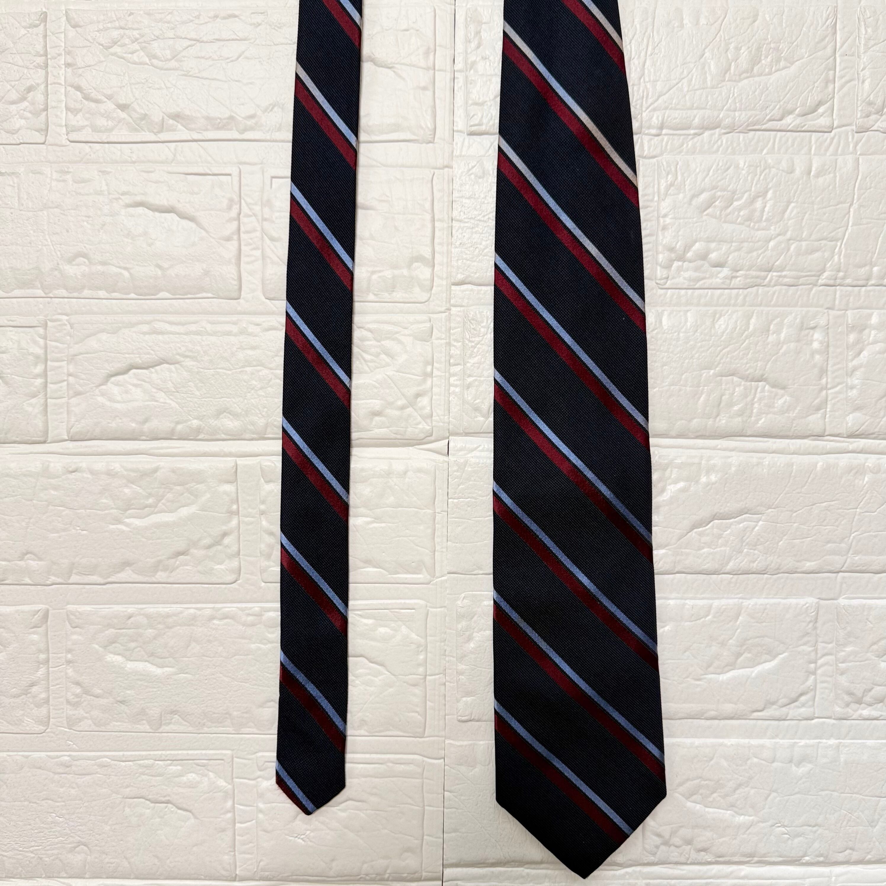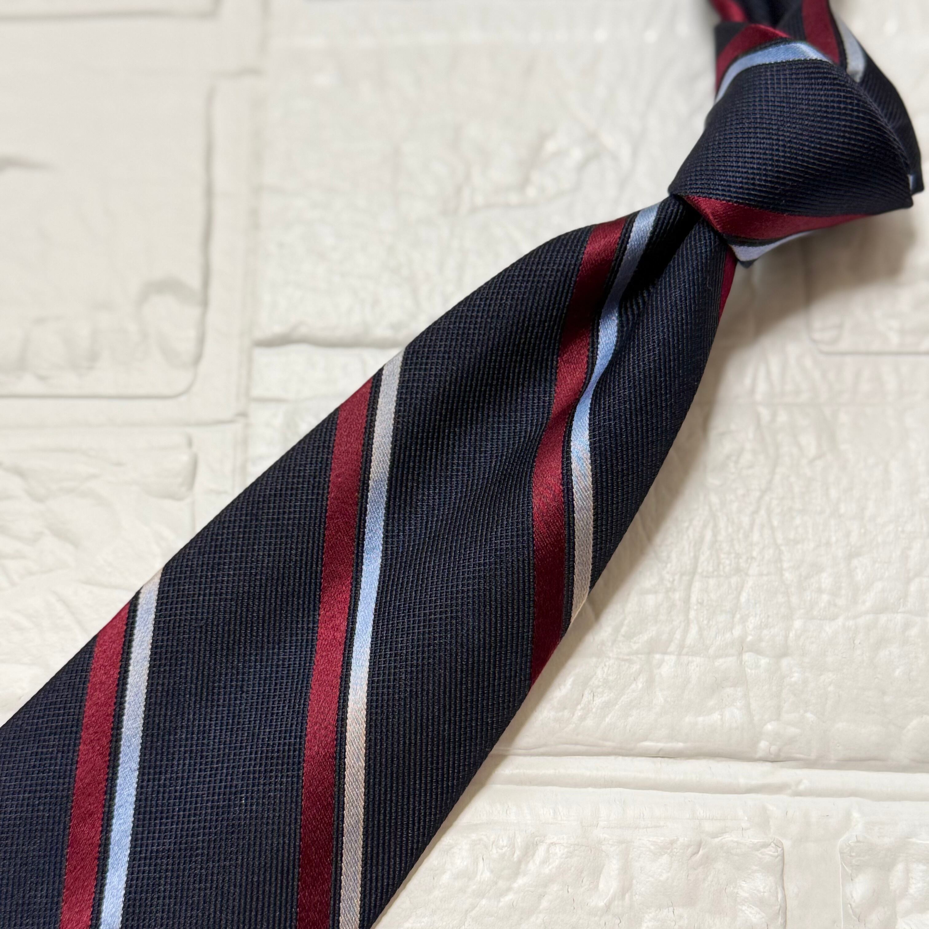 明るさと爽やかさある差し色がアクセントに映るアメリカ製のダブルストライプ柄ネクタイ。