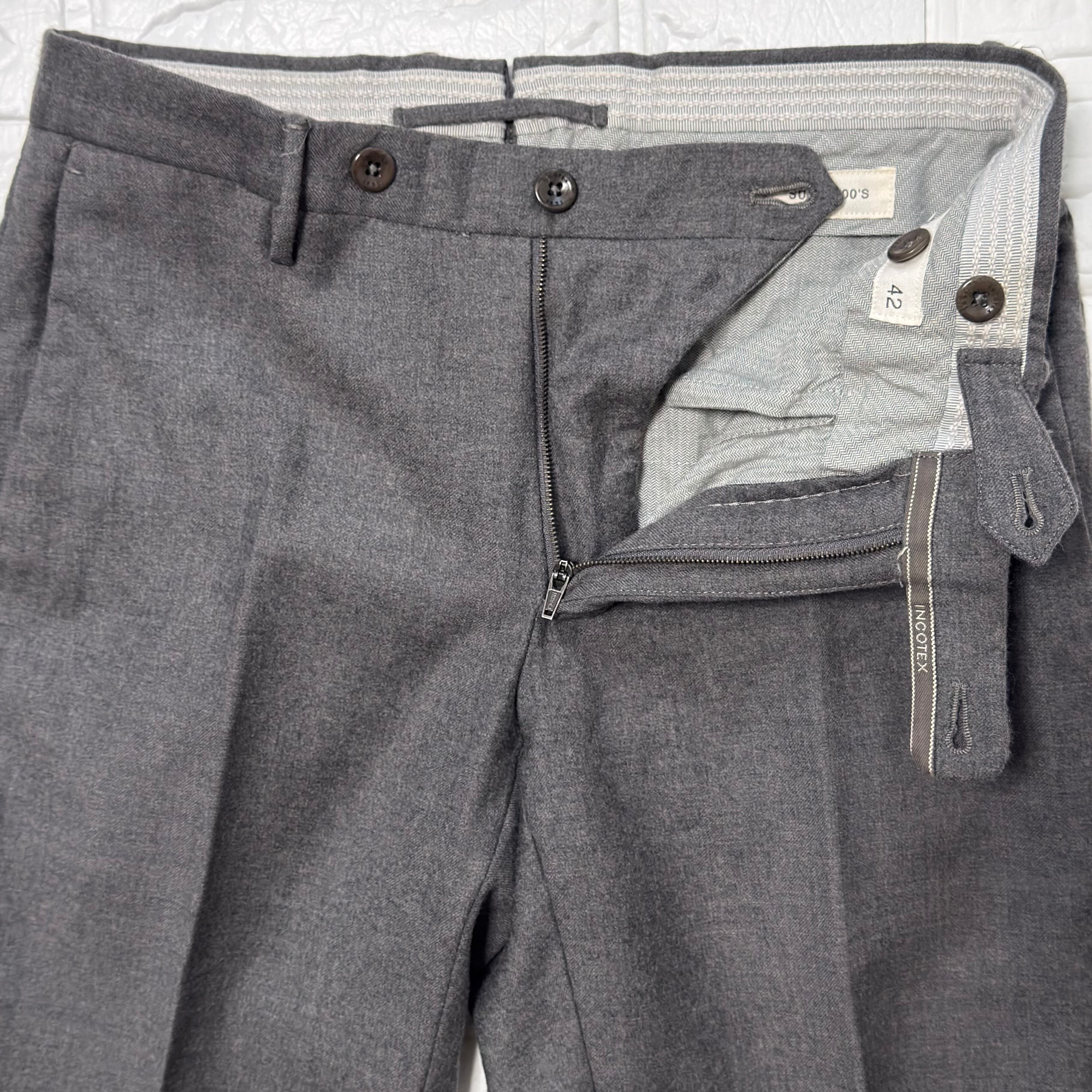ノープリーツのスッキリとした腰回りから渡りのラインとシャープに落ちるテーパードラインが人気のインコテックス名モデルの「T30」となります。