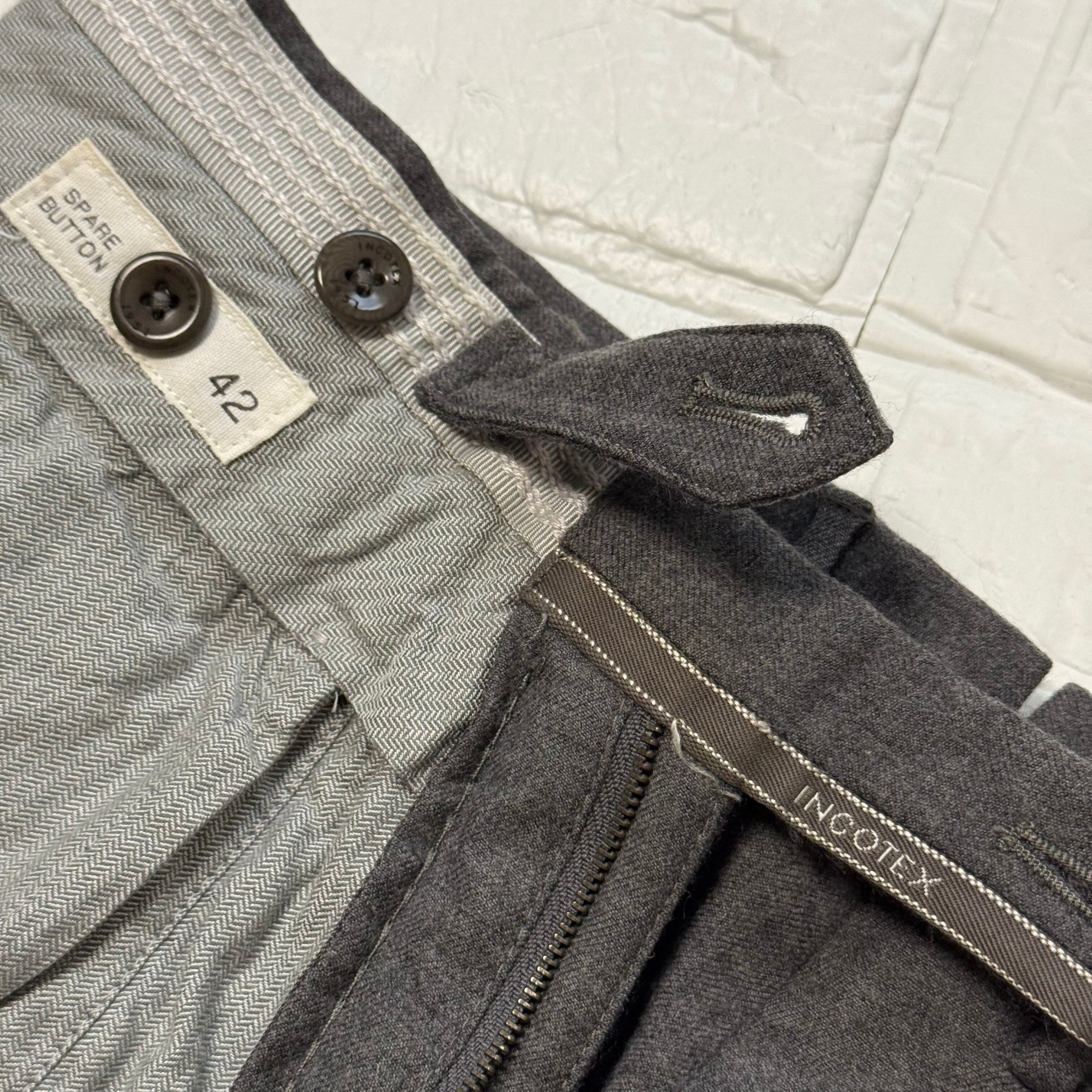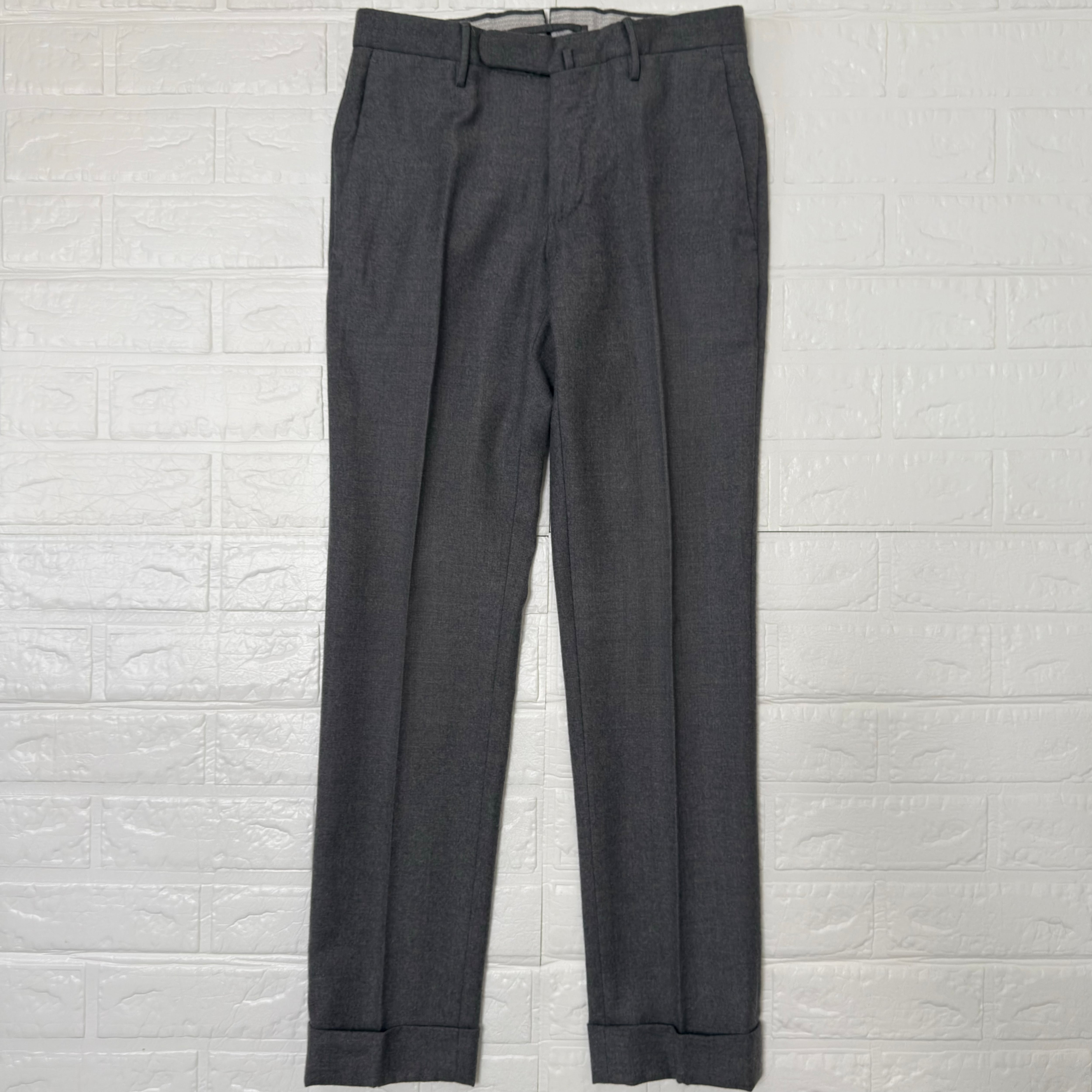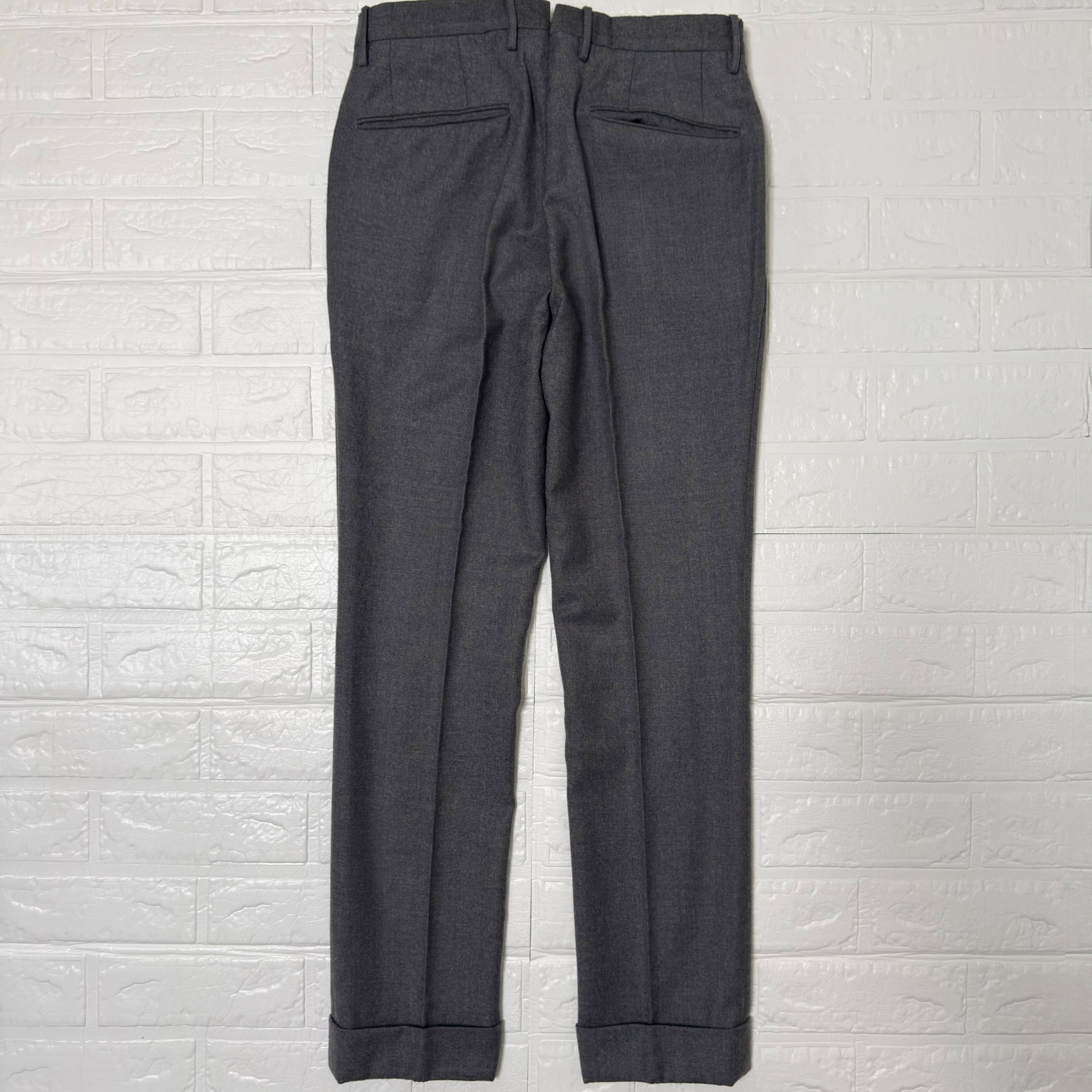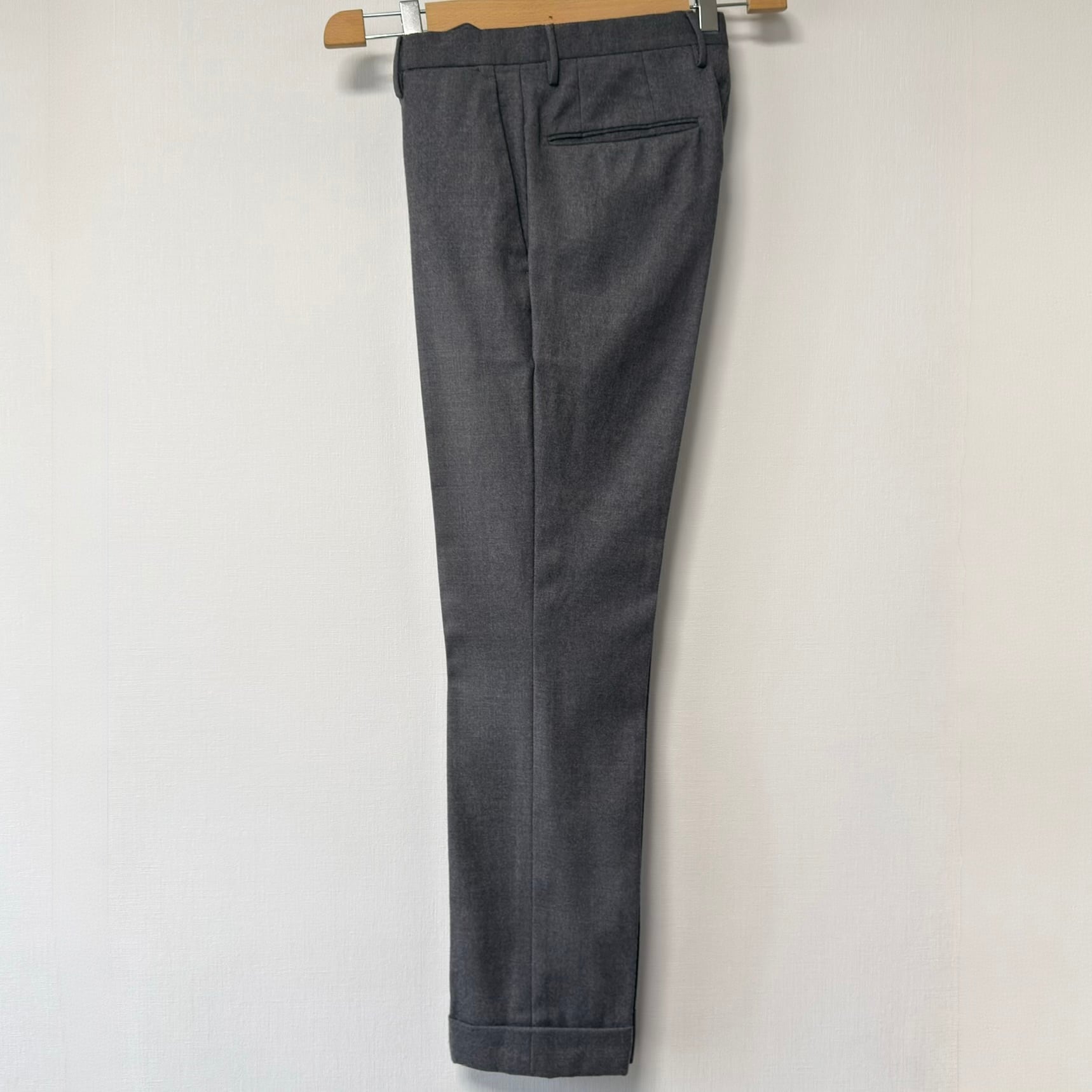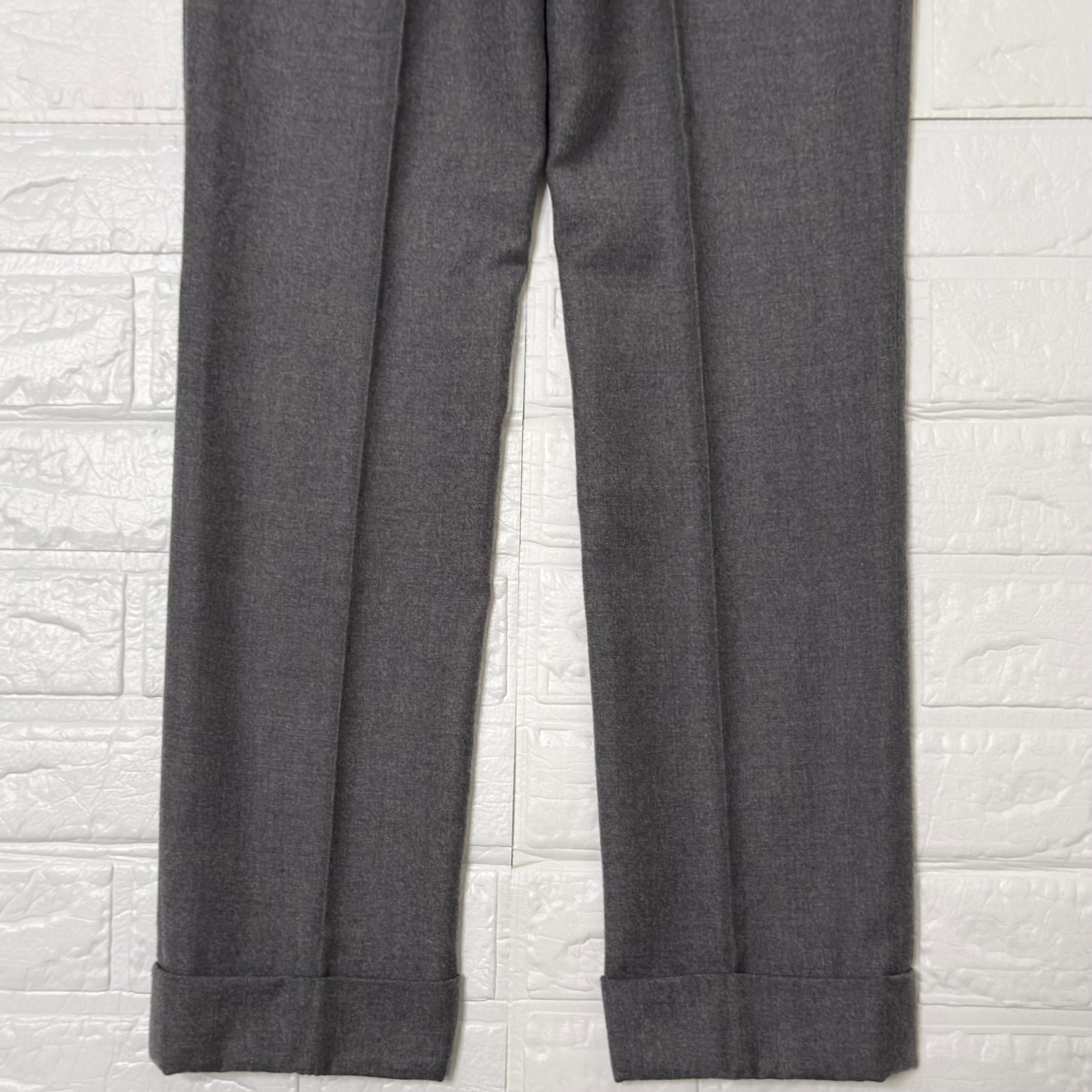 秋冬定番のミディアムグレーウールフランネルスラックス。