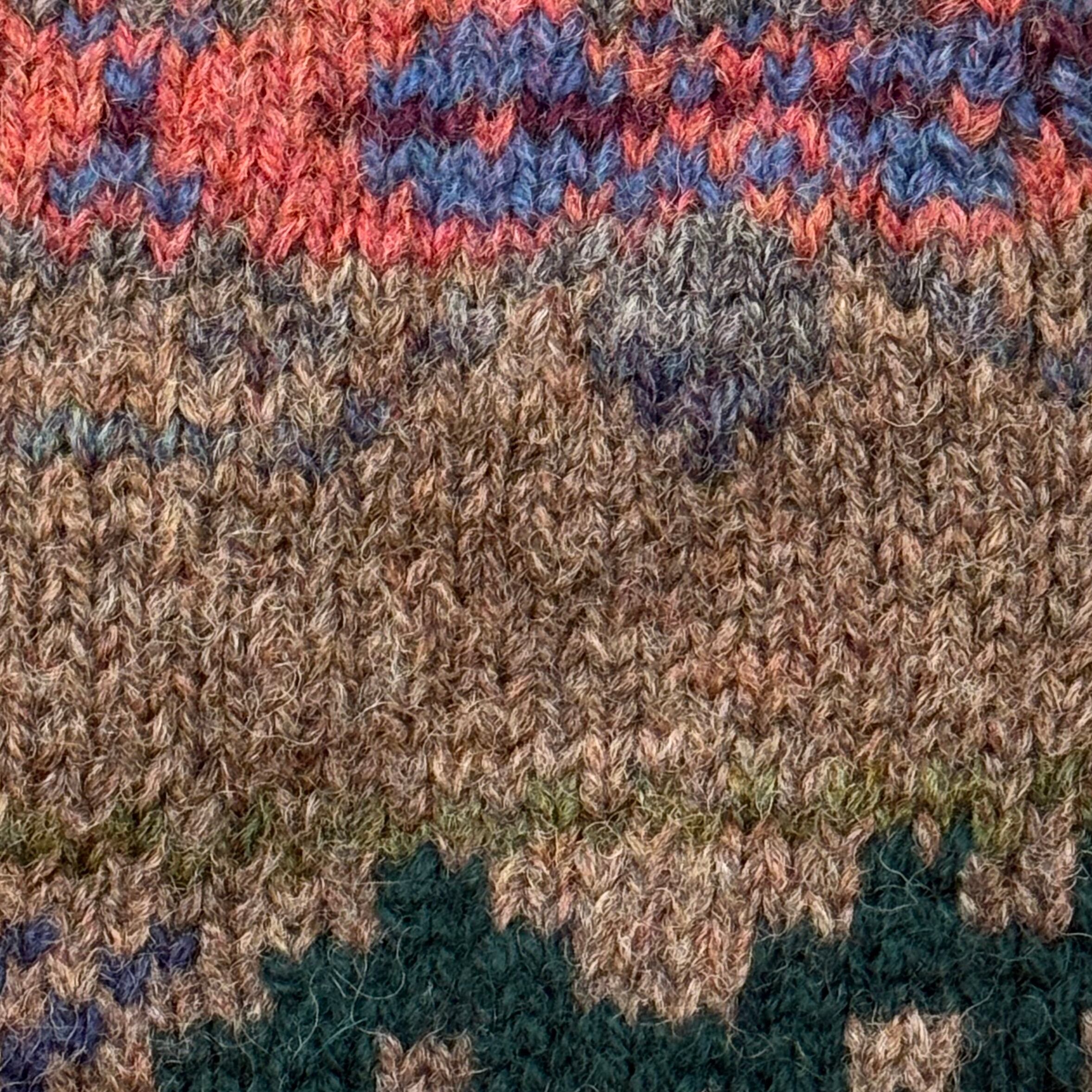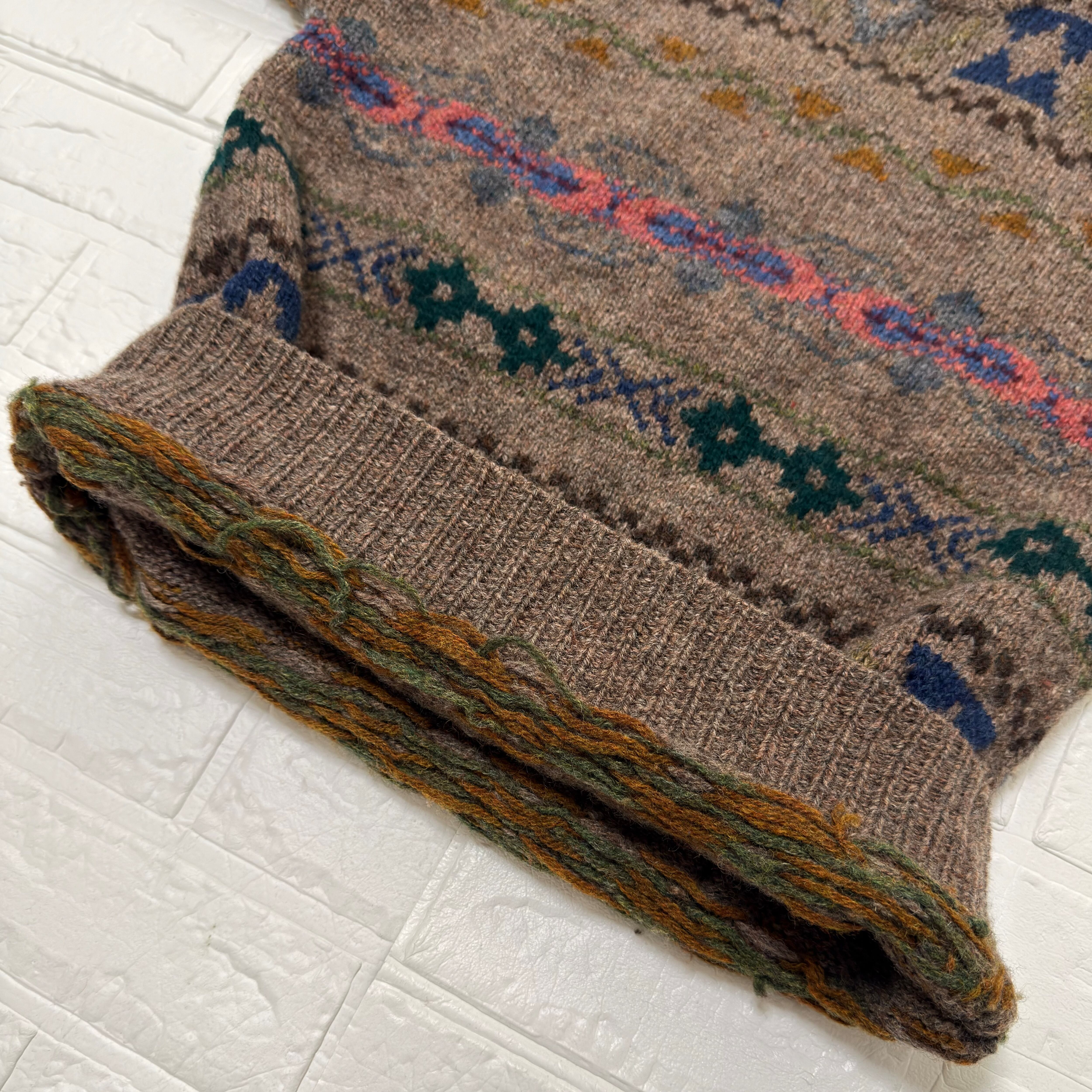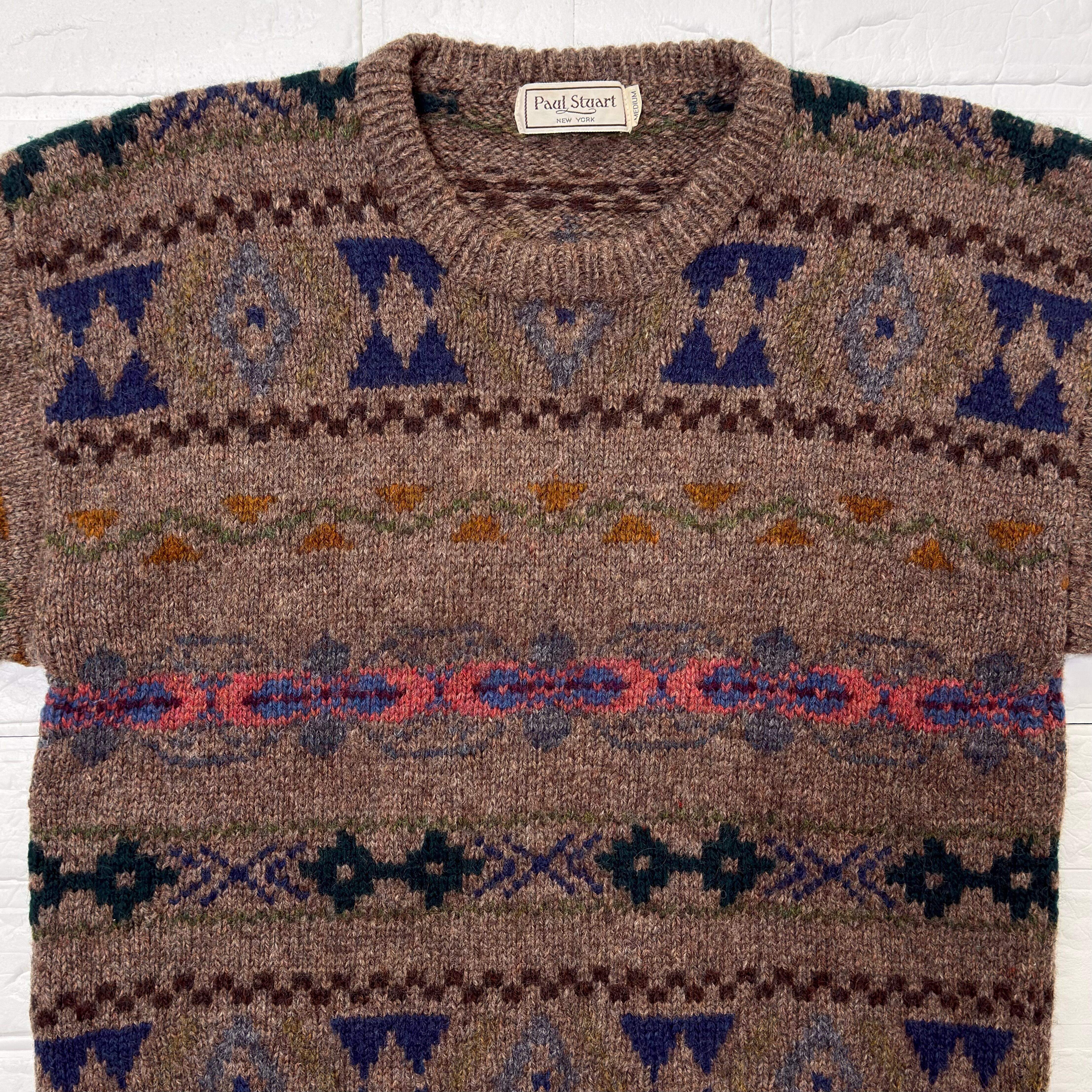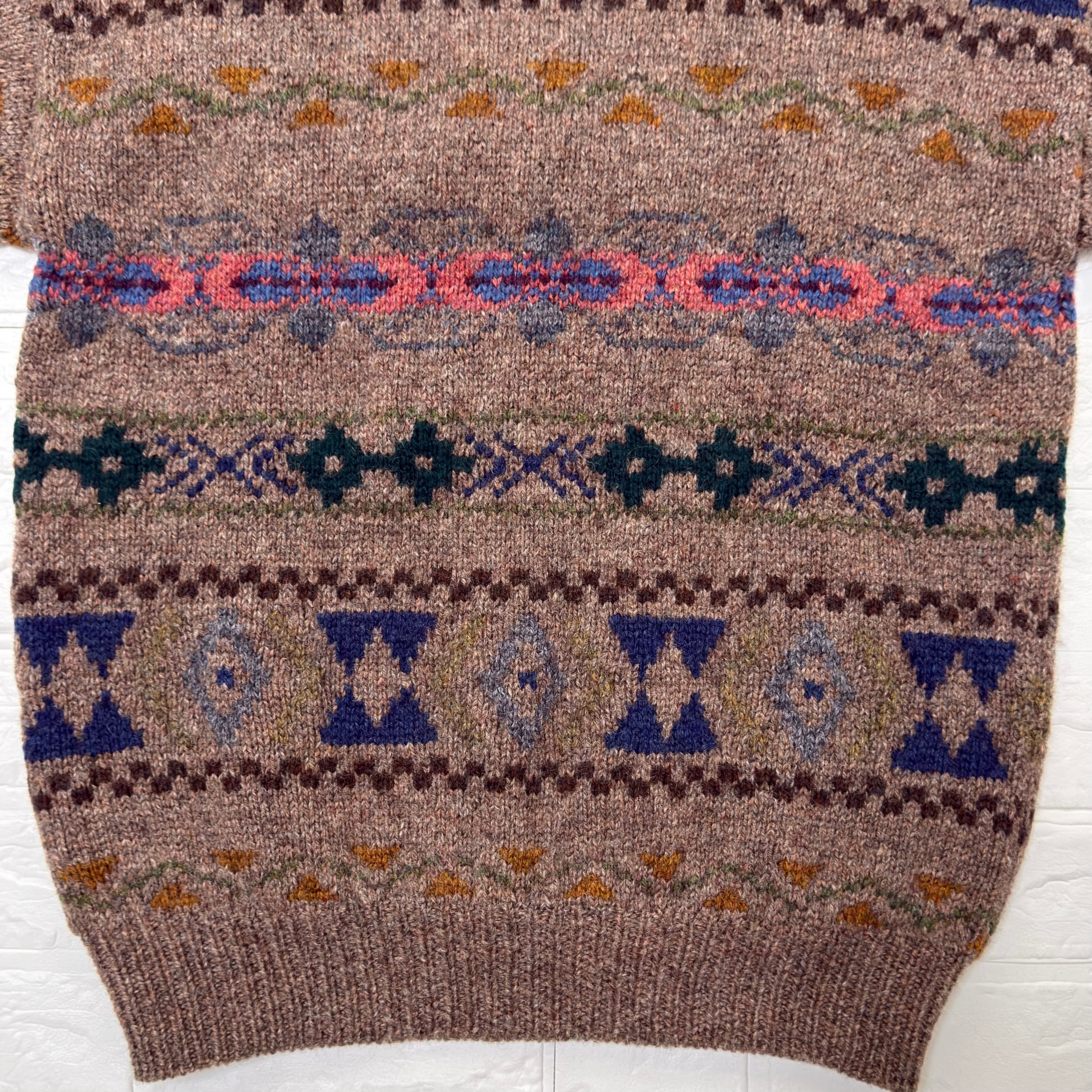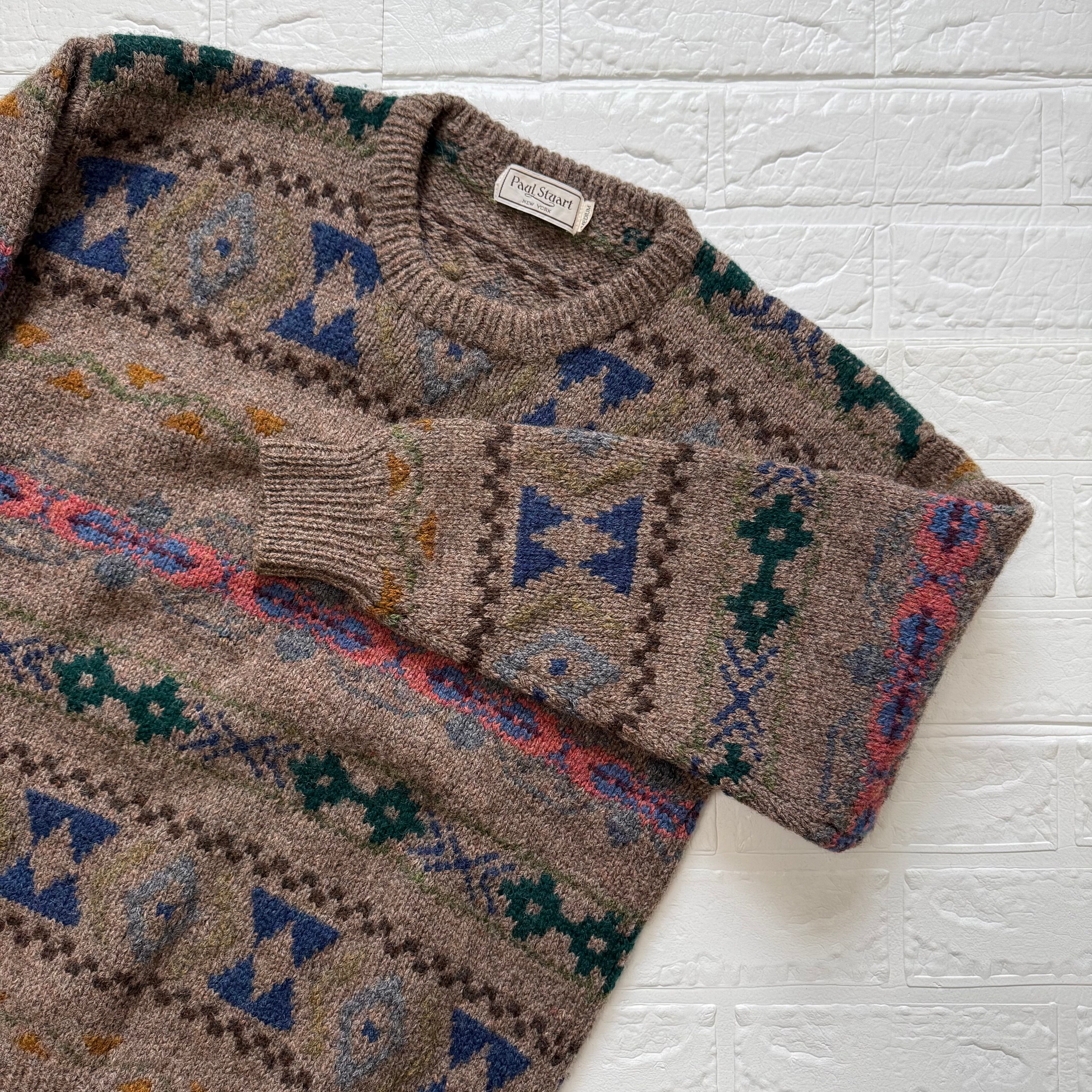 丁寧に編み上げられたカントリーテイストな総柄とポールスチュアートらしいモダンな多配色が印象的な一着です。