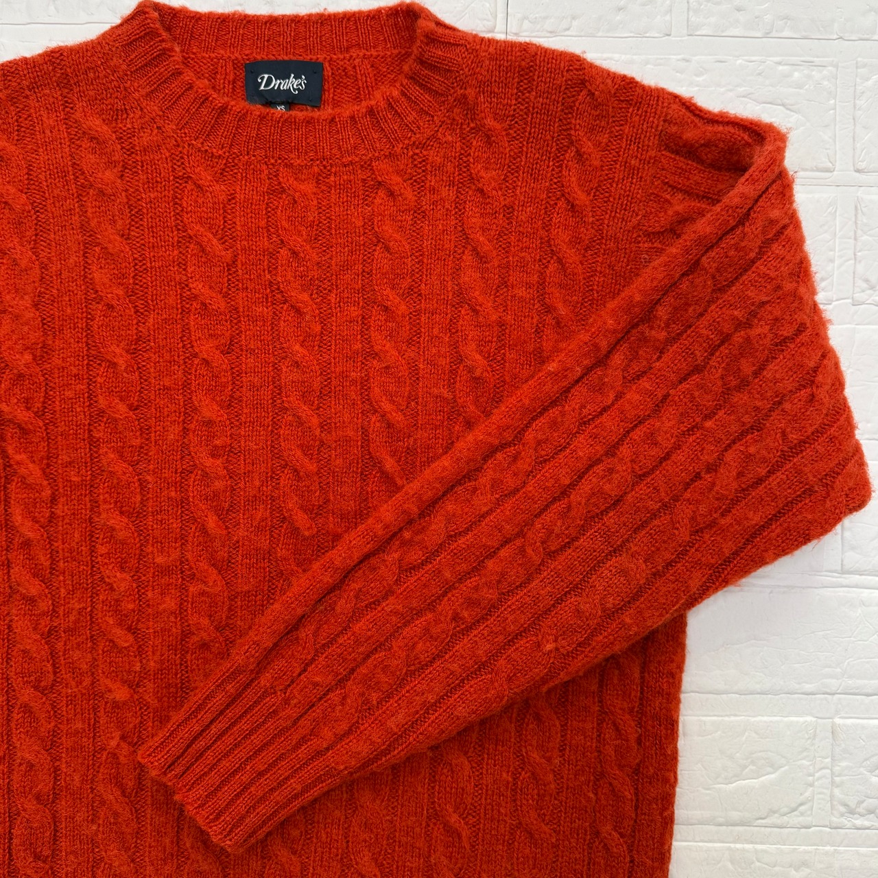 しっかりとしたふくらみのあるウールの毛足が、シャギードックならではの温かな着心地に。耐久性と立体感あるケーブル編みが施されております。