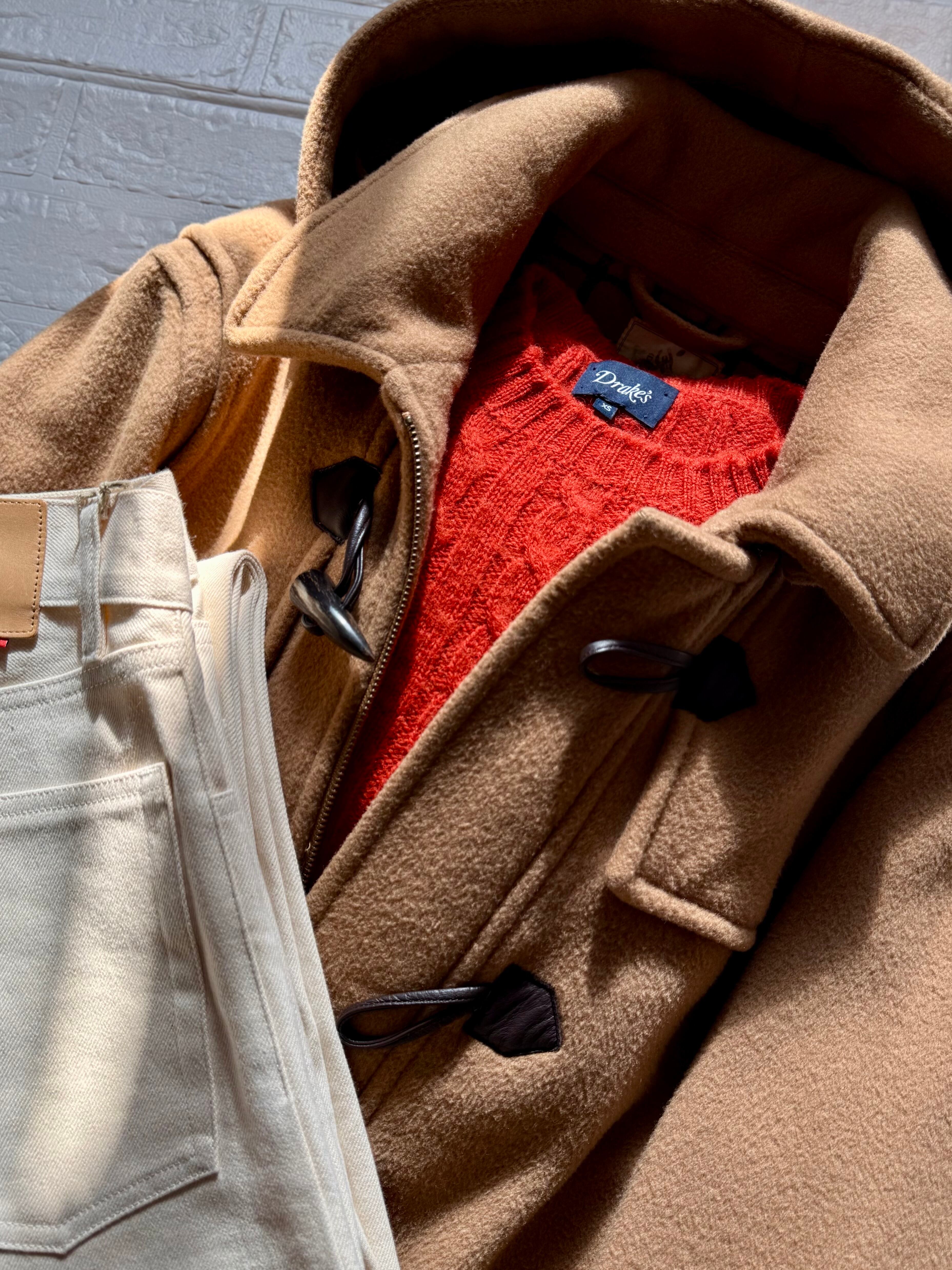プレッピーで遊び心ある鮮やかなオレンジの配色が、近年のドレイクスらしいモダントラッドな印象を演出。