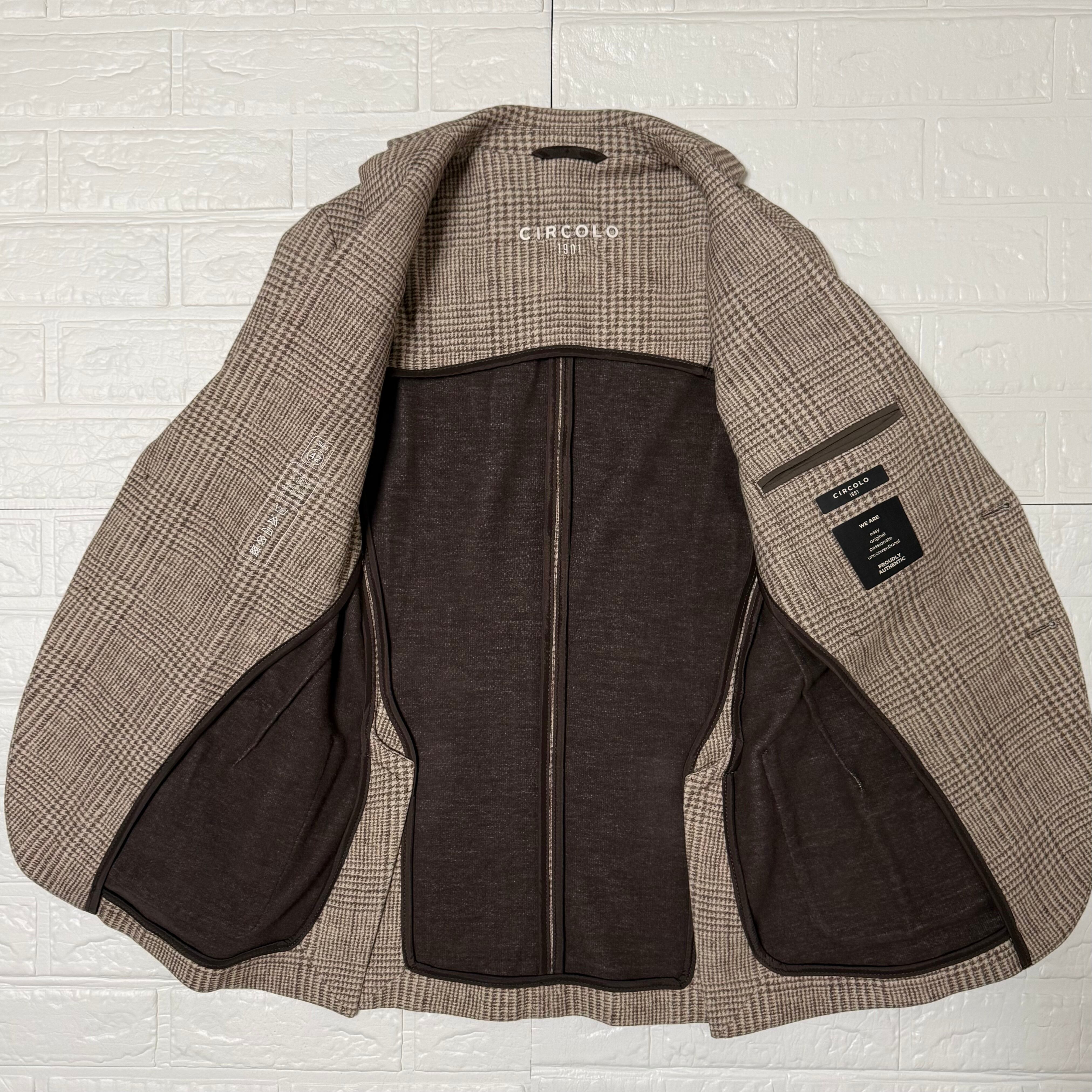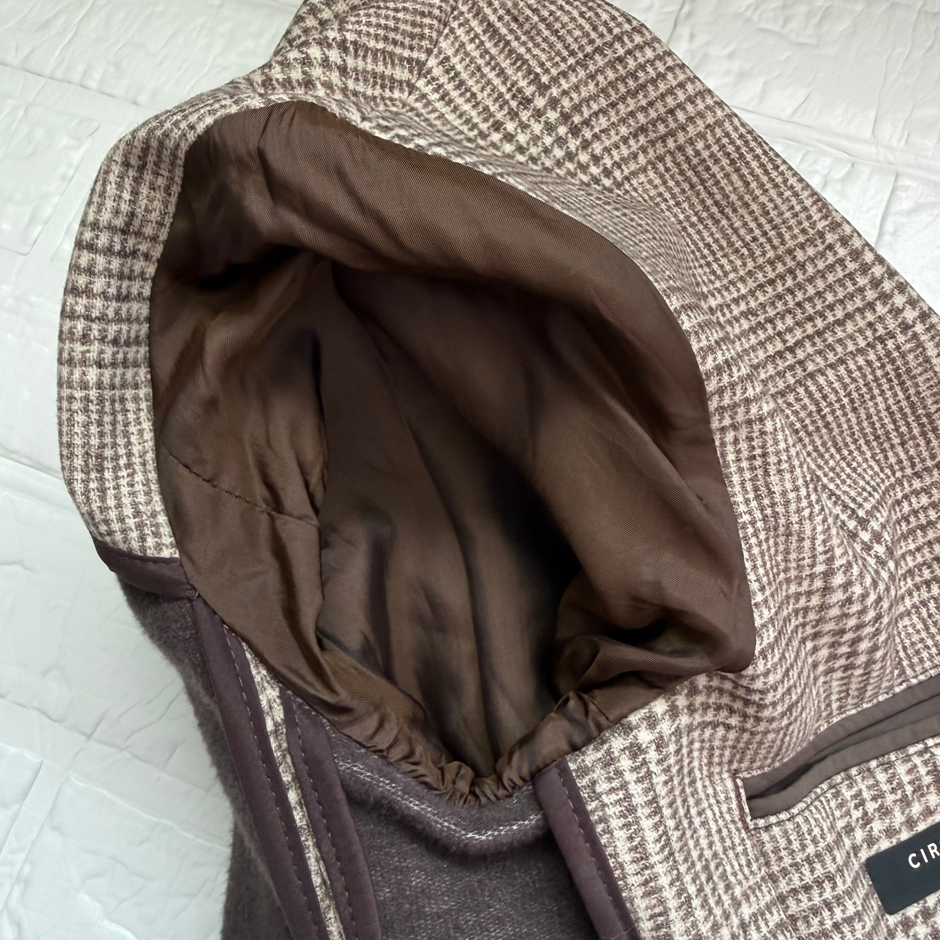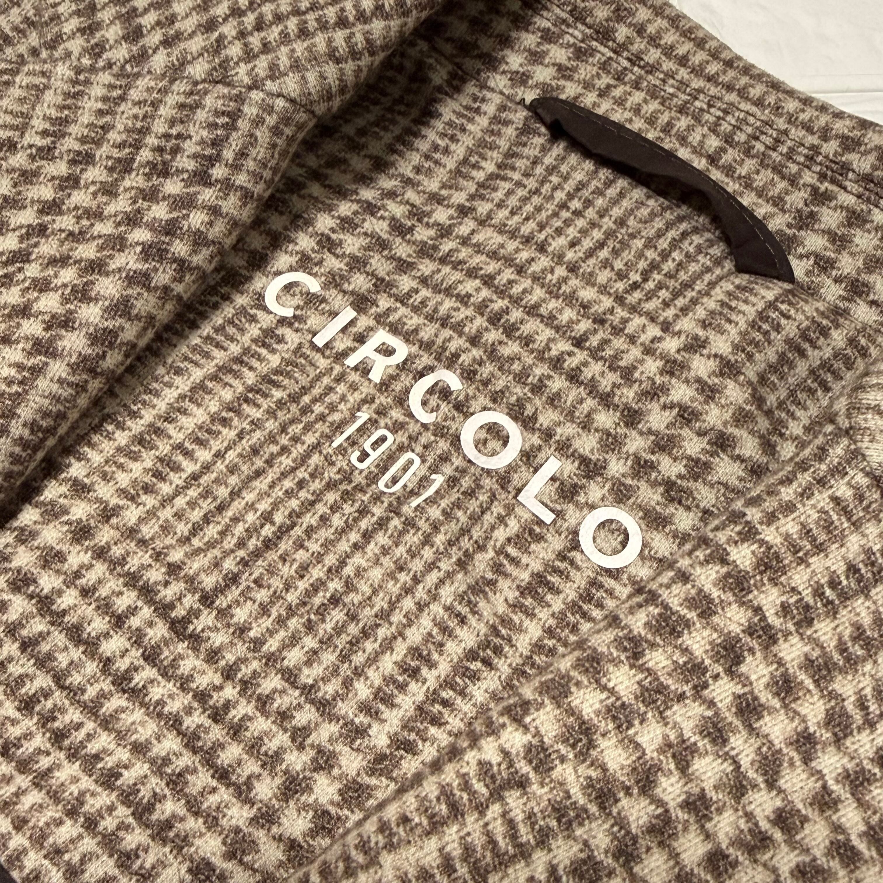 織りではなく高度な技術のファブリックプリントで表現されたグレンチェック柄が、《チルコロ》ならではの特徴。