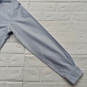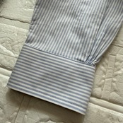 綺麗なカーブを描く襟のロール、カフスのギャザーは、流石の仕上がり。
